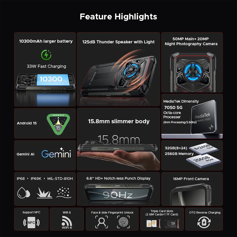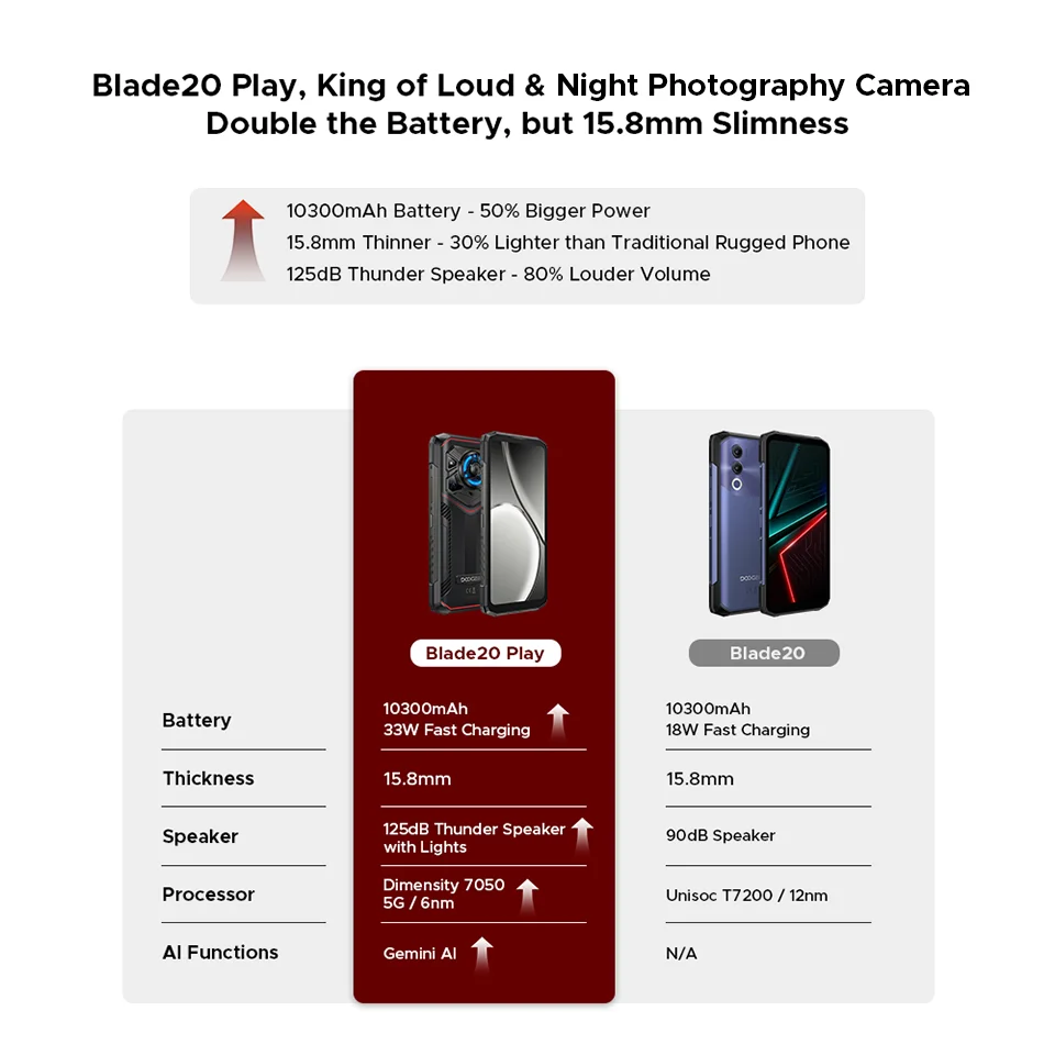 Global Version DOOGEE Blade20 Play Rugged Phone 5G Android 15 Gemini Al 10300mAh Battery 6.6” Display AI Camera Mobile phone