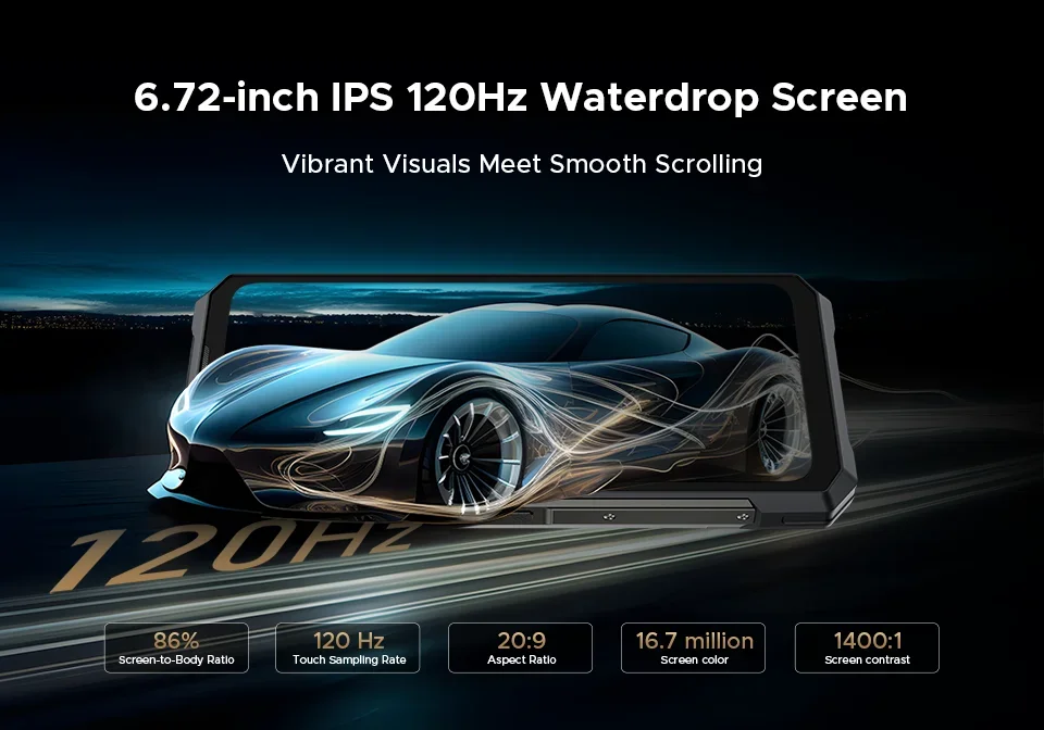 6.72″ FHD+ 120Hz IPS Waterdrop screen 1080*2400 Resolution |