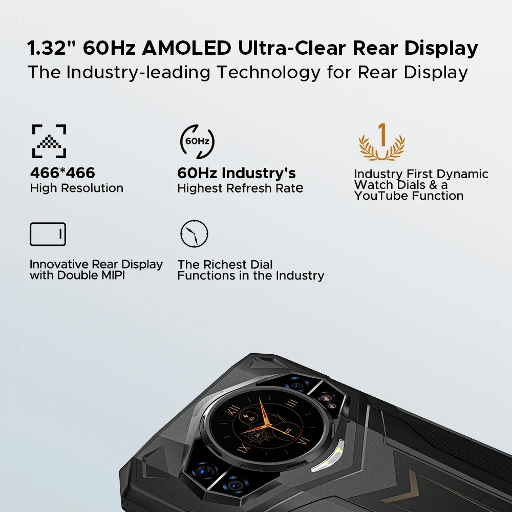 Take Leadership in the Rugged PhoneThe First 1.32″ 60Hz AMOLED Rear Display