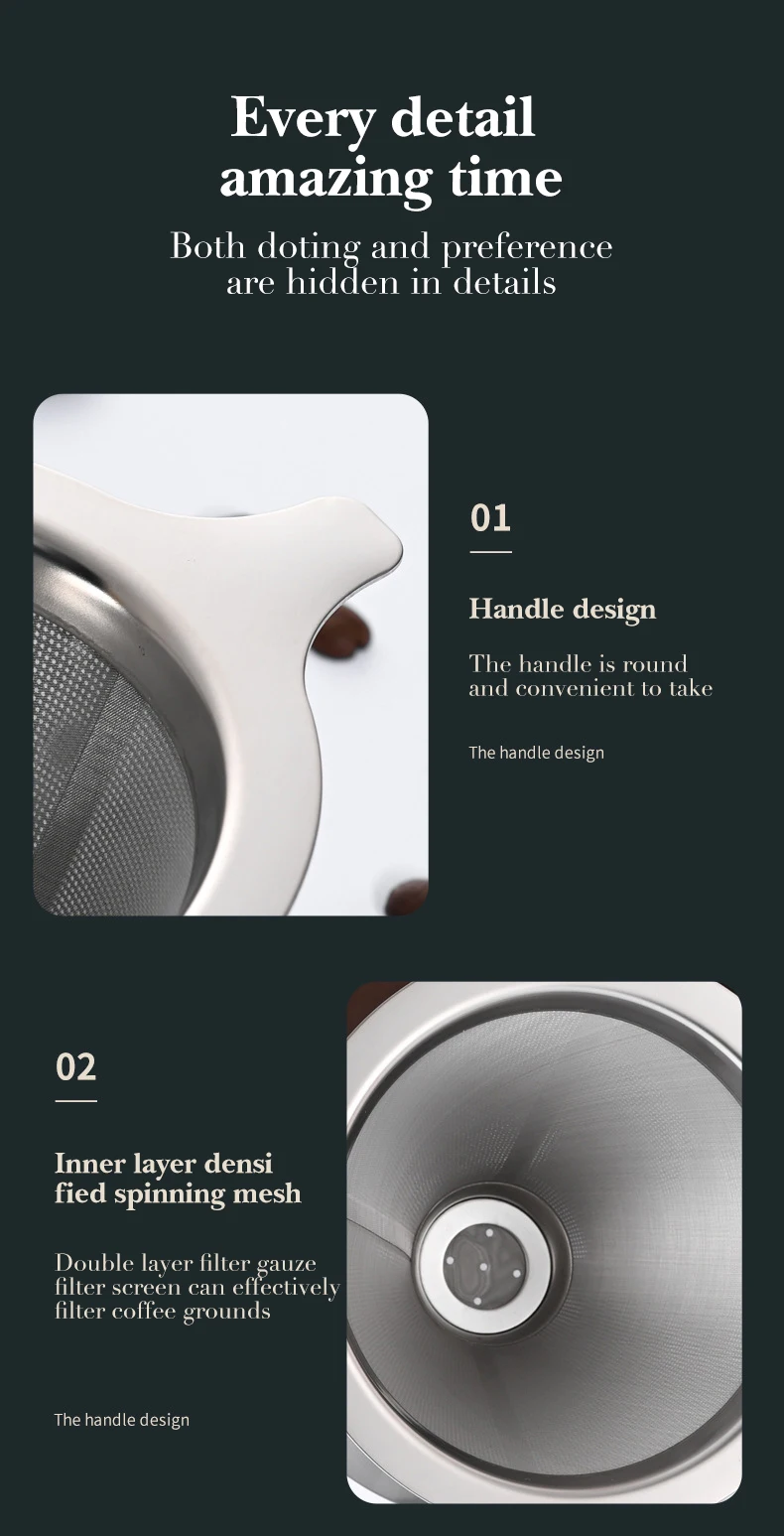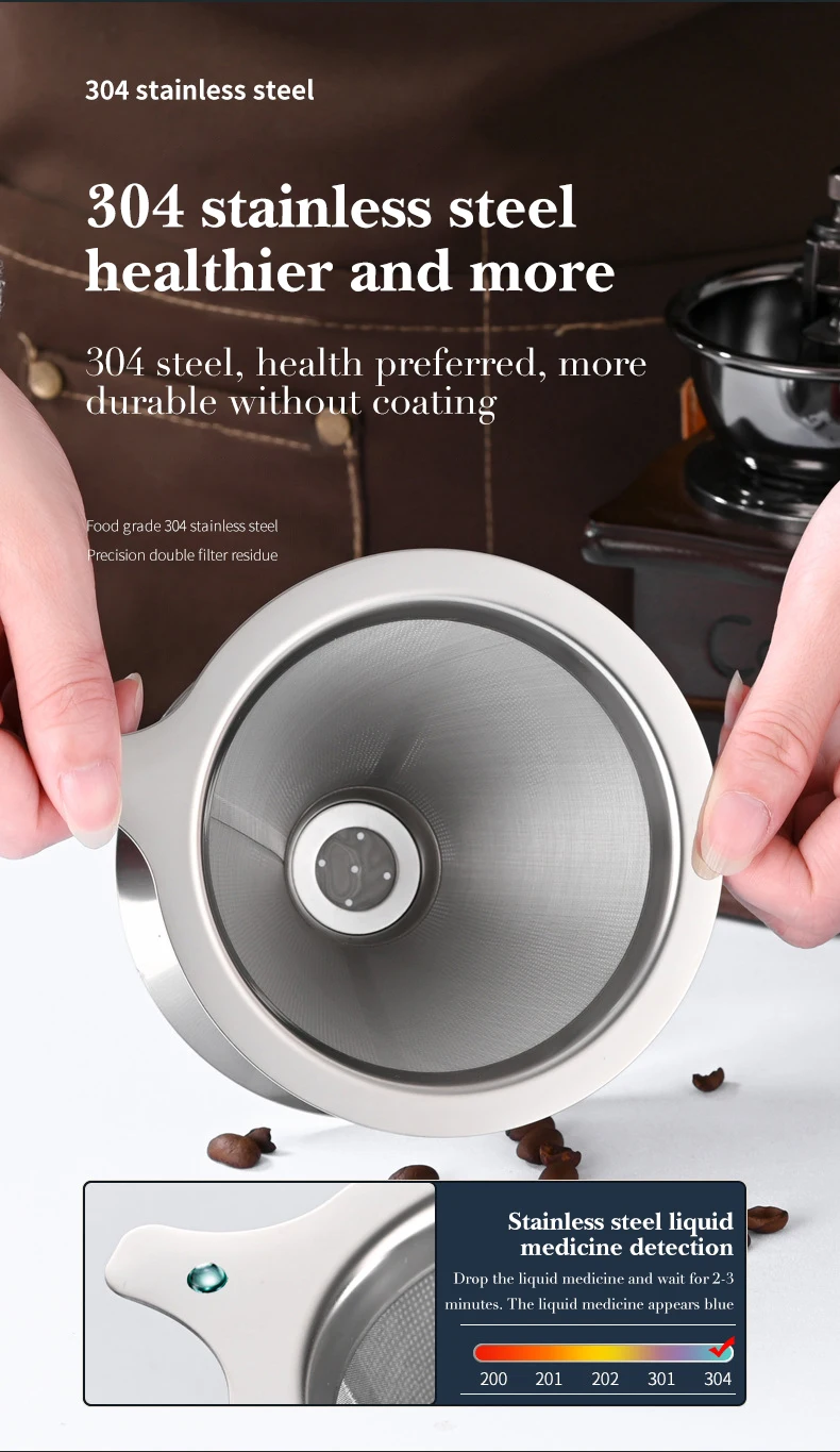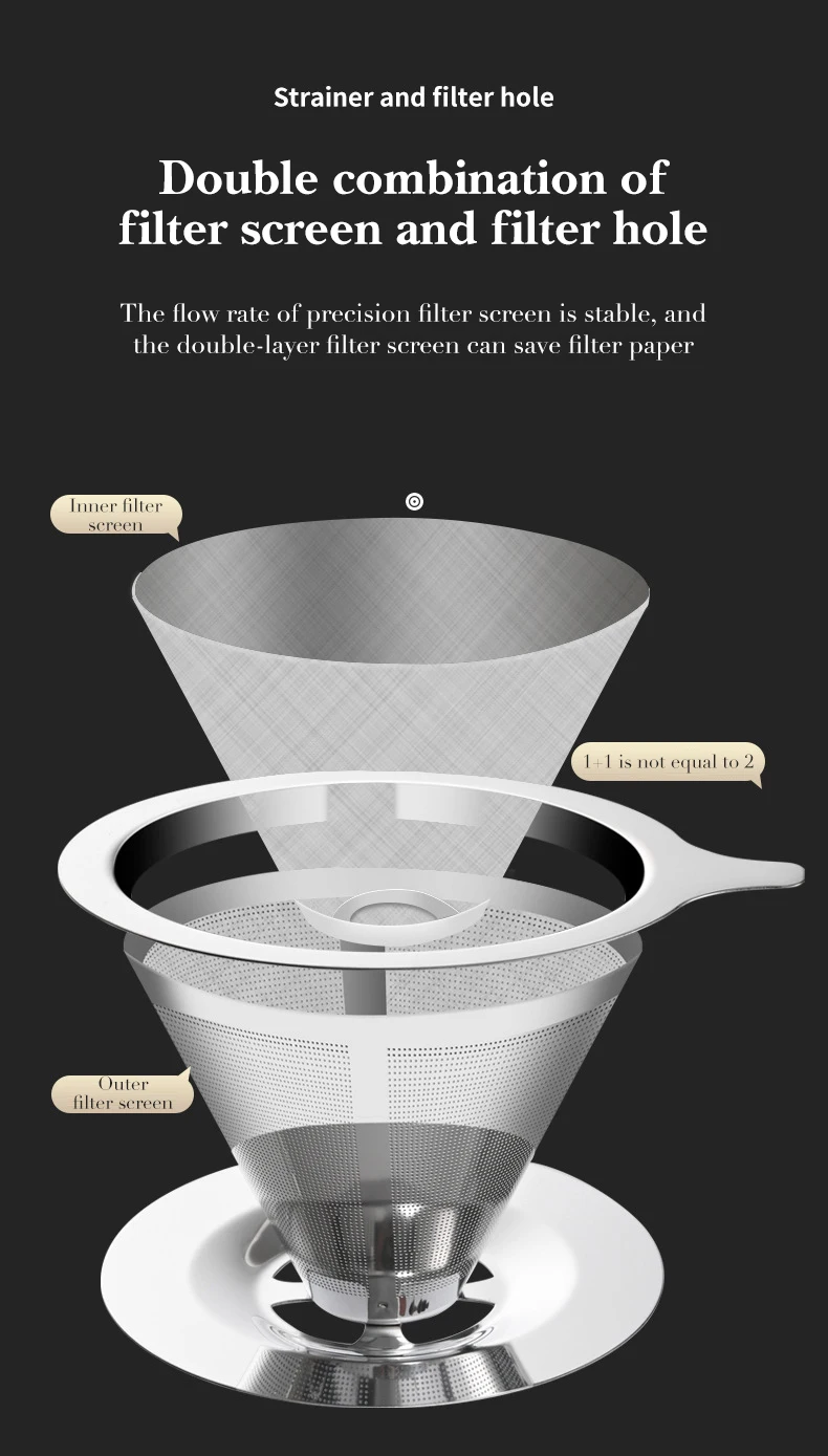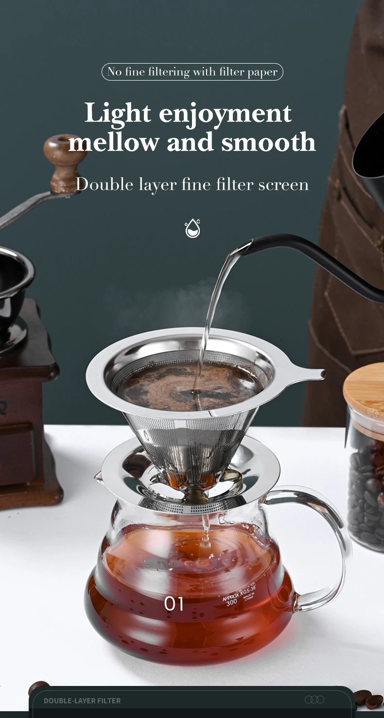 Double Layer Coffee Filter 304 Stainless Steel Reusable Holder Pour Over Coffees Dripper Mesh Coffee Filter Coffee Accessories