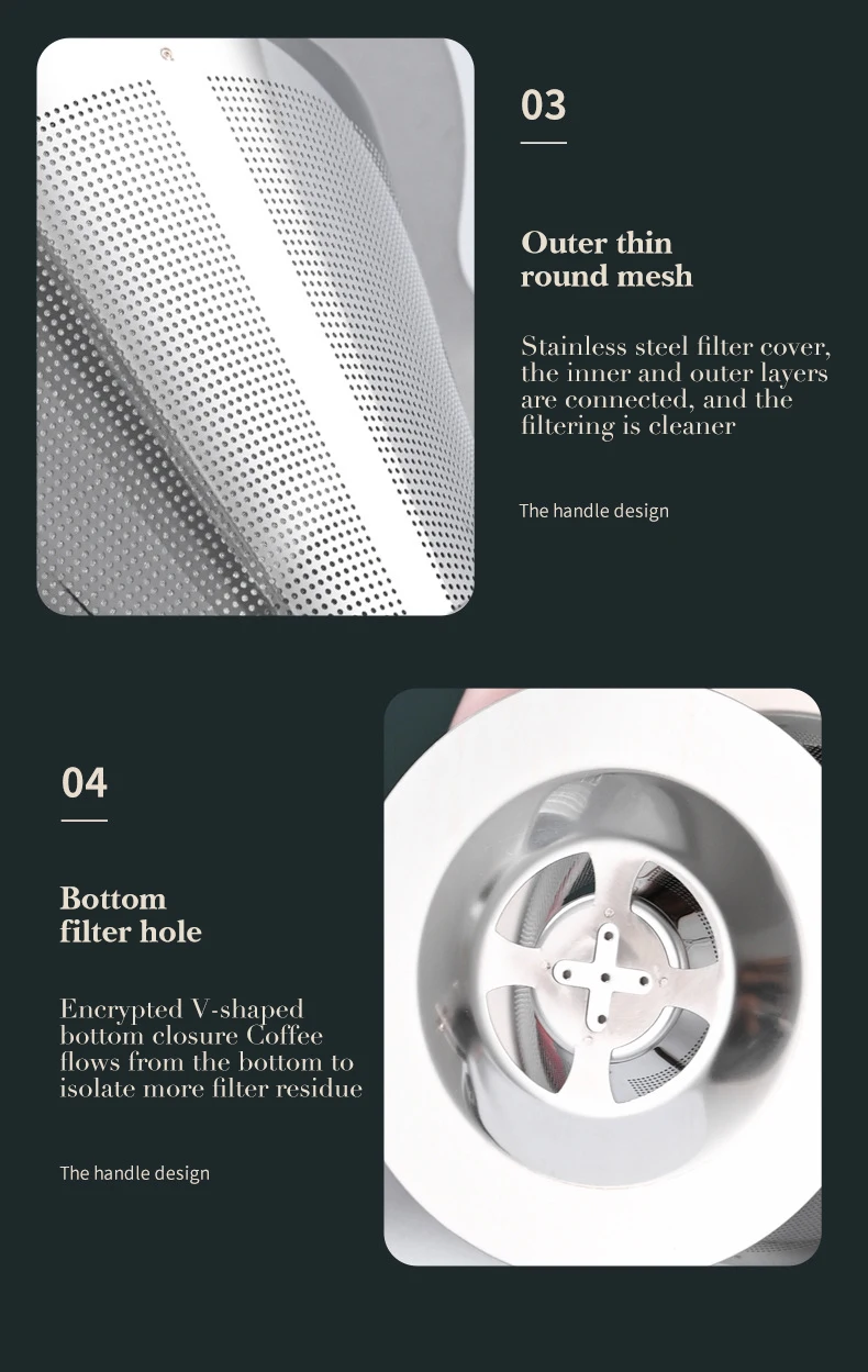 • [Double Layer Coffee Filter] – The coffee filter is made of high quality stainless steel, sturdy and durable. Double layer design prevents any coffee grounds from passing through and ensure no coffee grounds ending up in your cup.