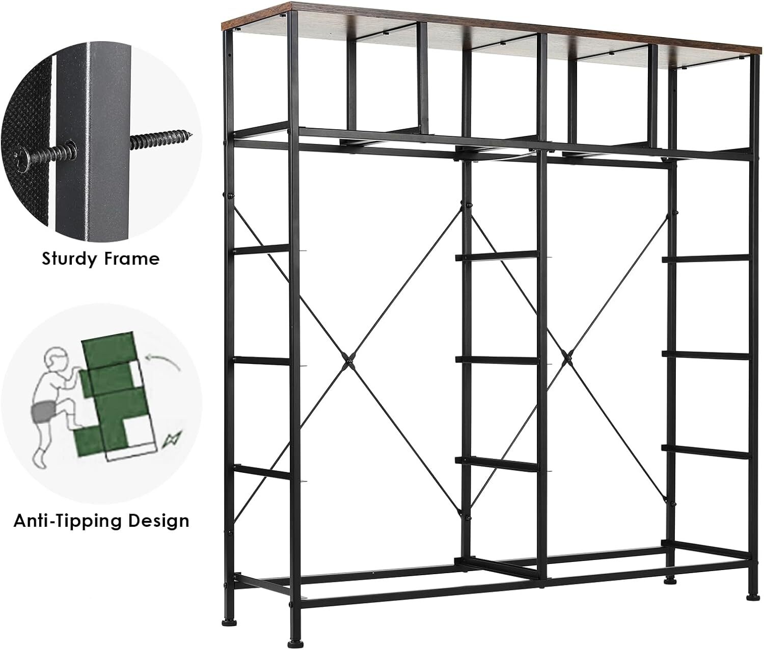 【ROBUST AND STABLE】 The fabric storage tower is made of a steel frame and a wooden top plate. Metal and wood are firmly connected with screws. The cross design of the metal iron rods on the back further improves the stability of the overall frame. In addition, each leg has an adjustable foot pad design, which can adapt to uneven floors while protecting the floor. We are also equipped with expansion screws for connecting to the wall, which can effectively prevent accidental tipping over. The dresser can bear a total load of up to 68 kg and stands stably on the ground.
