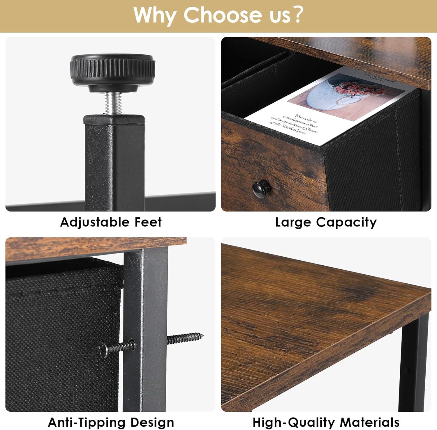 【STRUCTURAL STABILITY】The 2-X pull rod design behind the drawer cabinet further improves the stability of the overall frame. With the adjustable feet, the height can be finely adjusted by turning the knob to compensate for uneven floors. Our textured printed boxes also come with screws that can be nailed to the wall, effectively preventing the cabinet from tipping over. The drawer cabinet can bear a total load of up to 68 kilograms and stands stably on the floor.