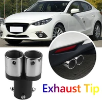 Dual Outlet Car Exhaust Tip Stainless Steel Auto Muffler Silencer Universal Black+Silver