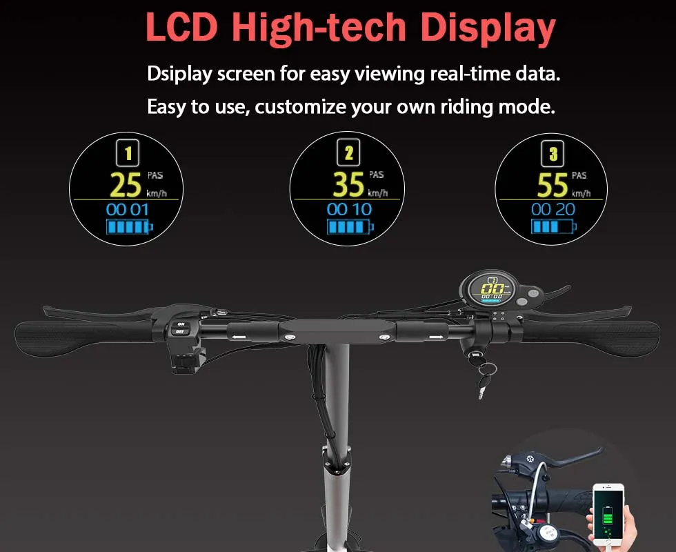 The handlebars can be adjusted to fit your height. The handlebars are equipped with a headlight switch, a horn switch, and an LCD meter. More efficient for you to control the riding.
