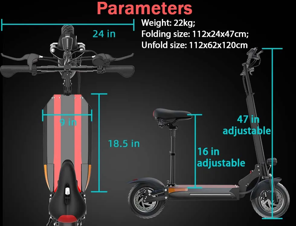 - electric scooter folded size: 112x24x47cm