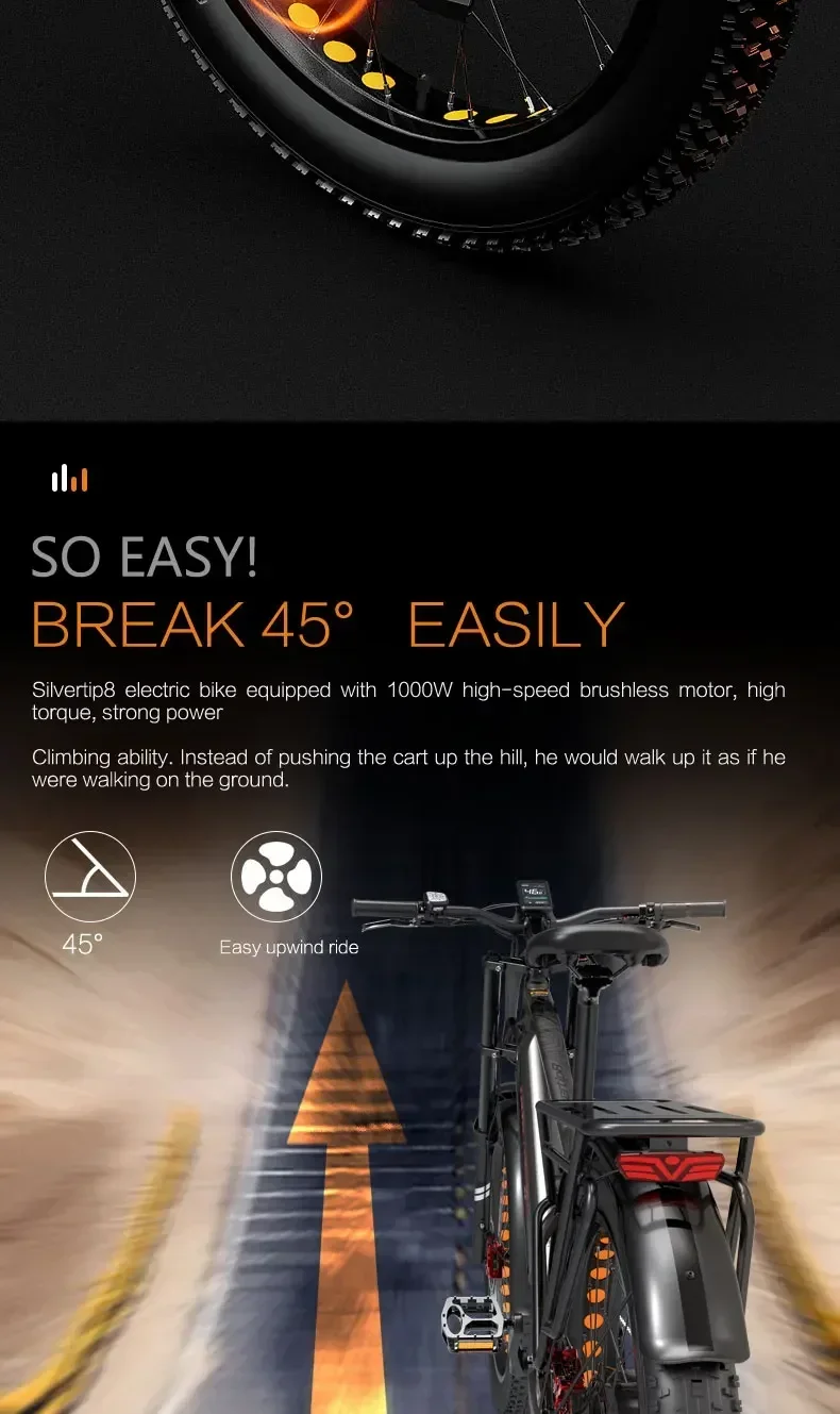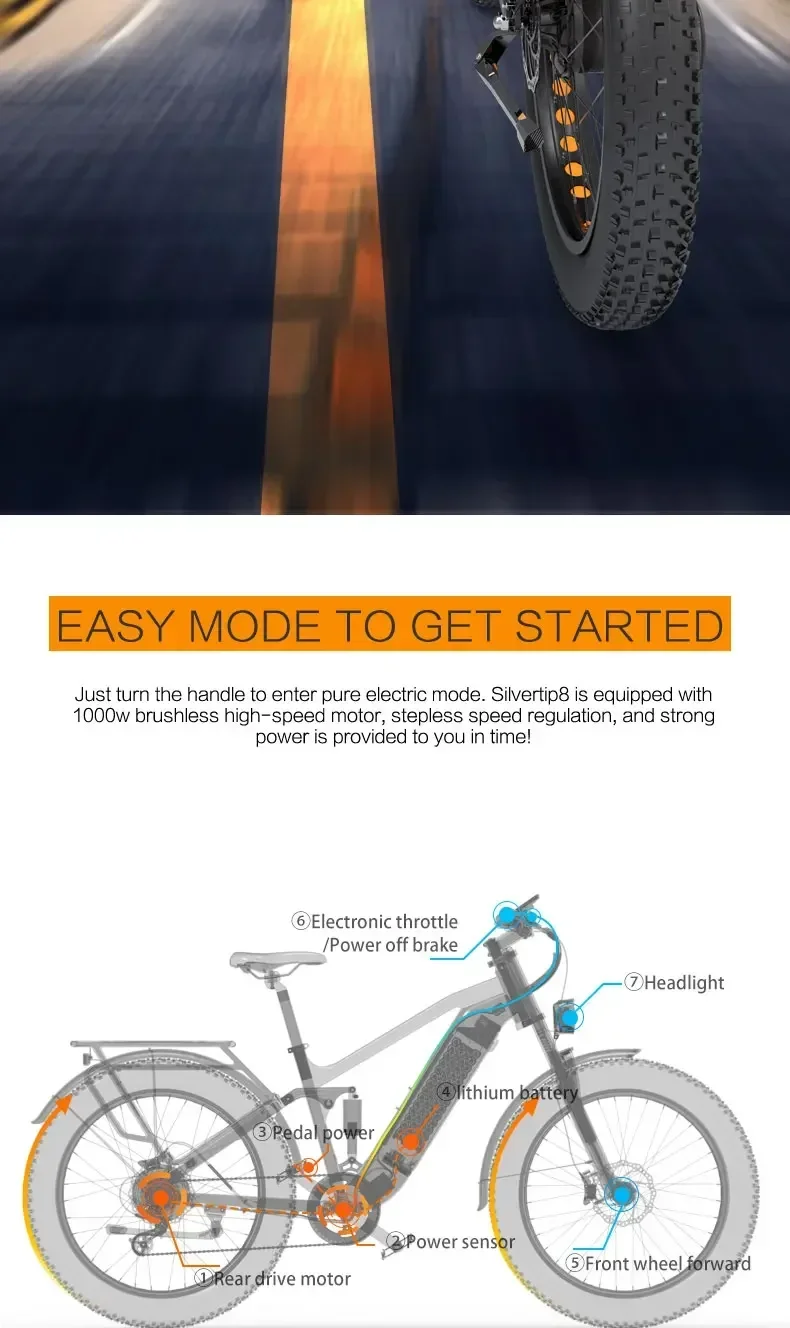 DUKAWEY Silvertip8 Electric Bike 1000W Motor 52V 20AH 26*4.0 Inch Fat Tire Electric Bicycle Mountain Snow Full Suspension Ebike