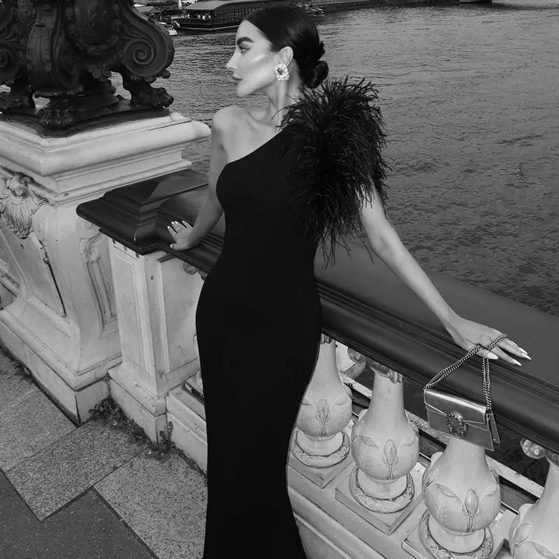 Dulzura Black Sleeveless One Shoulder Maxi Dress For Women Bodycon Sexy Party Elegant Long Dress Birthday Evening Outfit