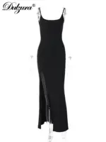 Dulzura Sleeveless Side Slit Lace Patchwork Backless Cami Maxi Dress Women’S Sexy Elegant Long Dress Party Clubwear Autumn