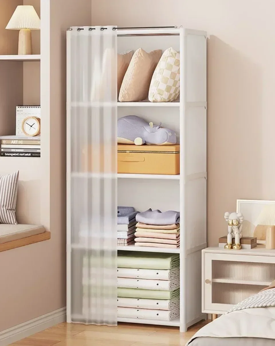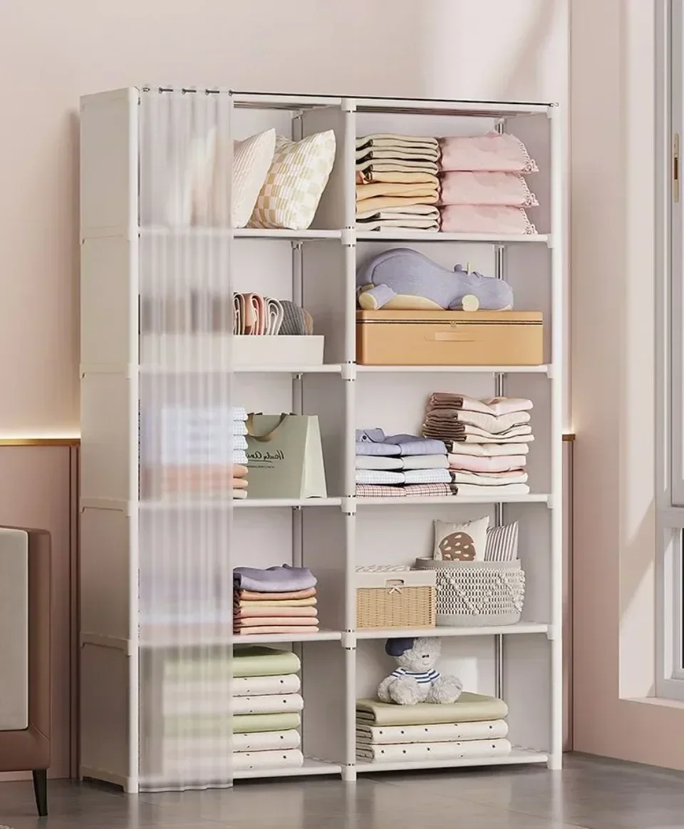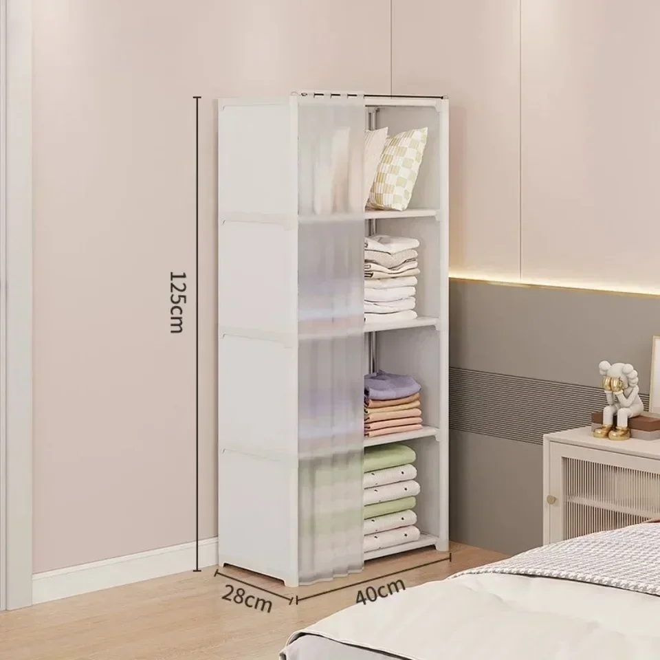 Dustproof Wardrobe Multi-Layer Storage Rack With Curtains Large Capacity Simple Bookshelf Wardrobes Bedroom Fcloset Organizer