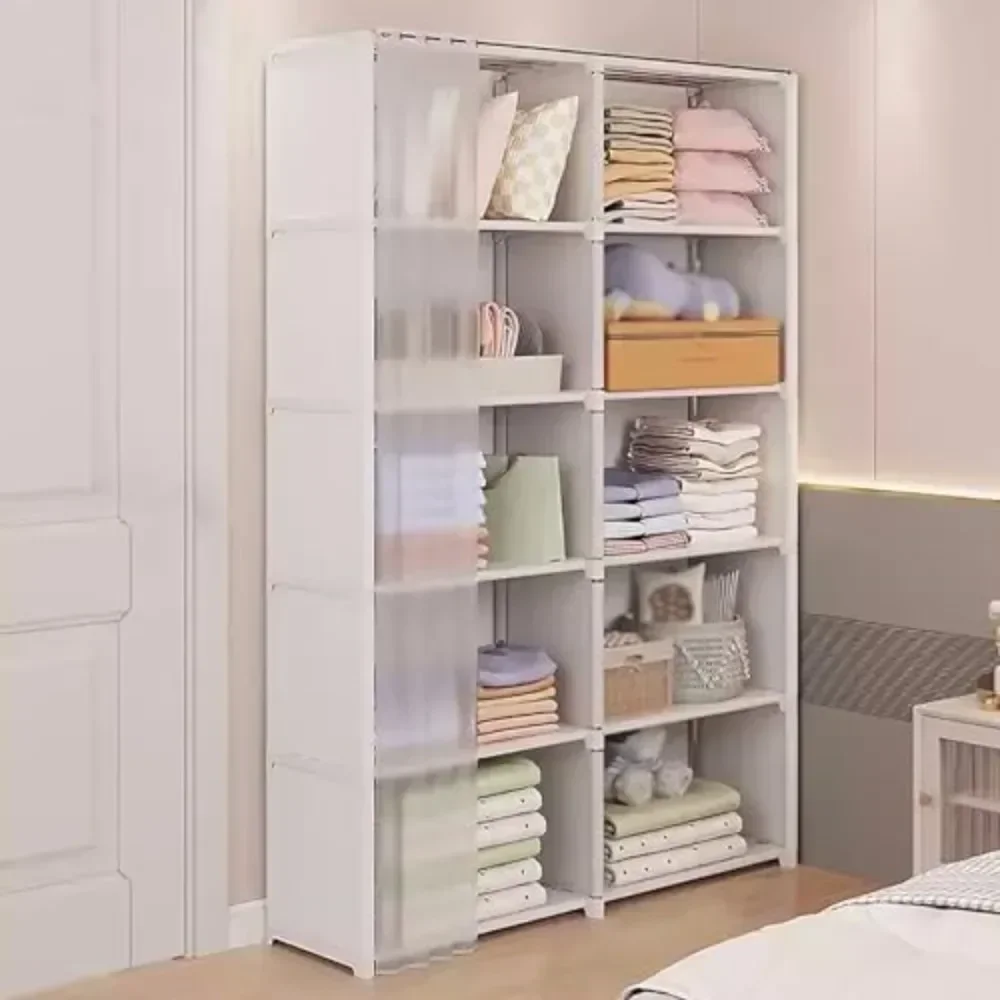 Dustproof Wardrobe Multi-Layer Storage Rack With Curtains Large Capacity Simple Bookshelf Wardrobes Bedroom Fcloset Organizer