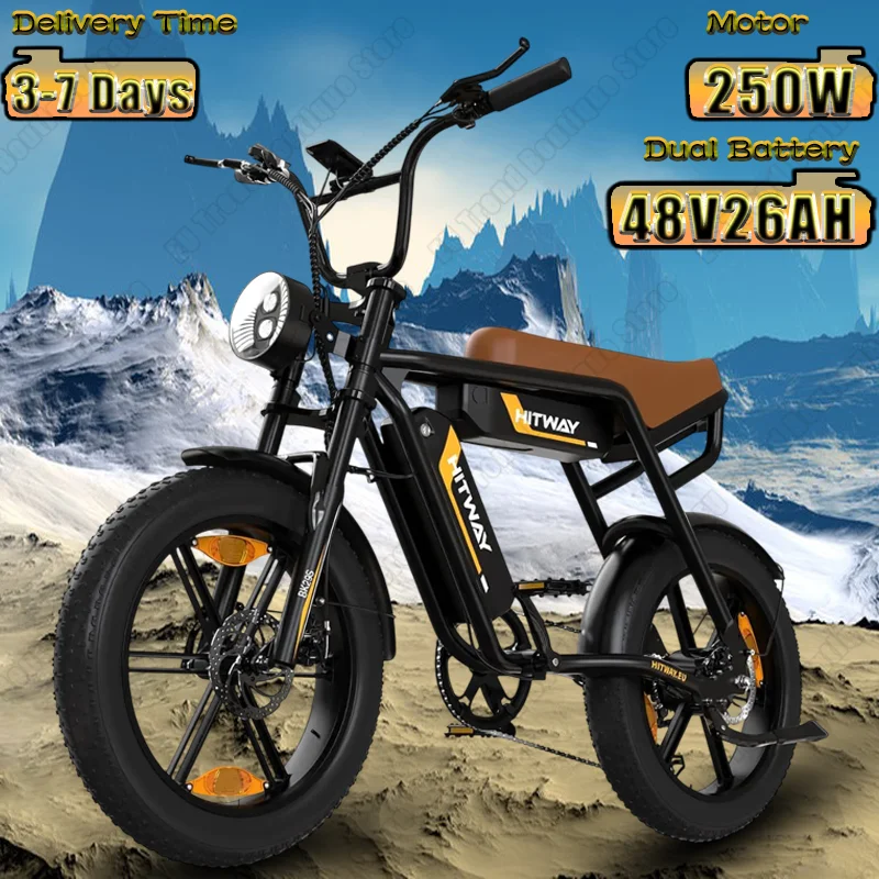 E Bike 250W Brushless Motor 48V26AH Dual Lithium Battery Adult Electric Bicycle 20*4.0 Inch All Terrain Fat Tire Electric Bike