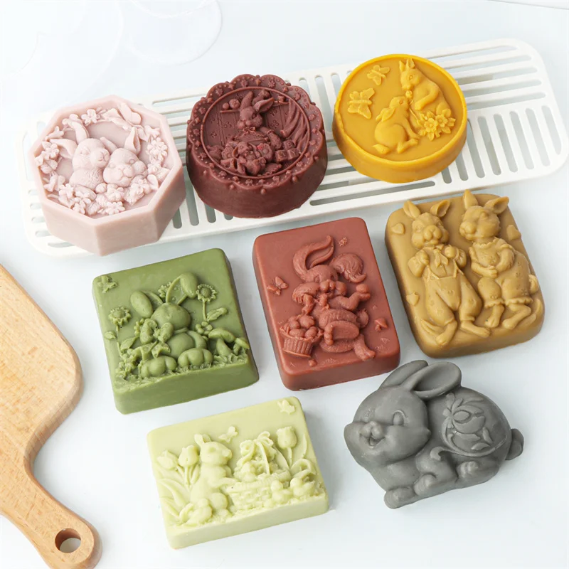 Easter Flower Rabbit Silicone Soap Mold DIY Happy Cute Rabbit Flower Pattern Butterfly Animal Relief Chocolate Cake Decor Gift