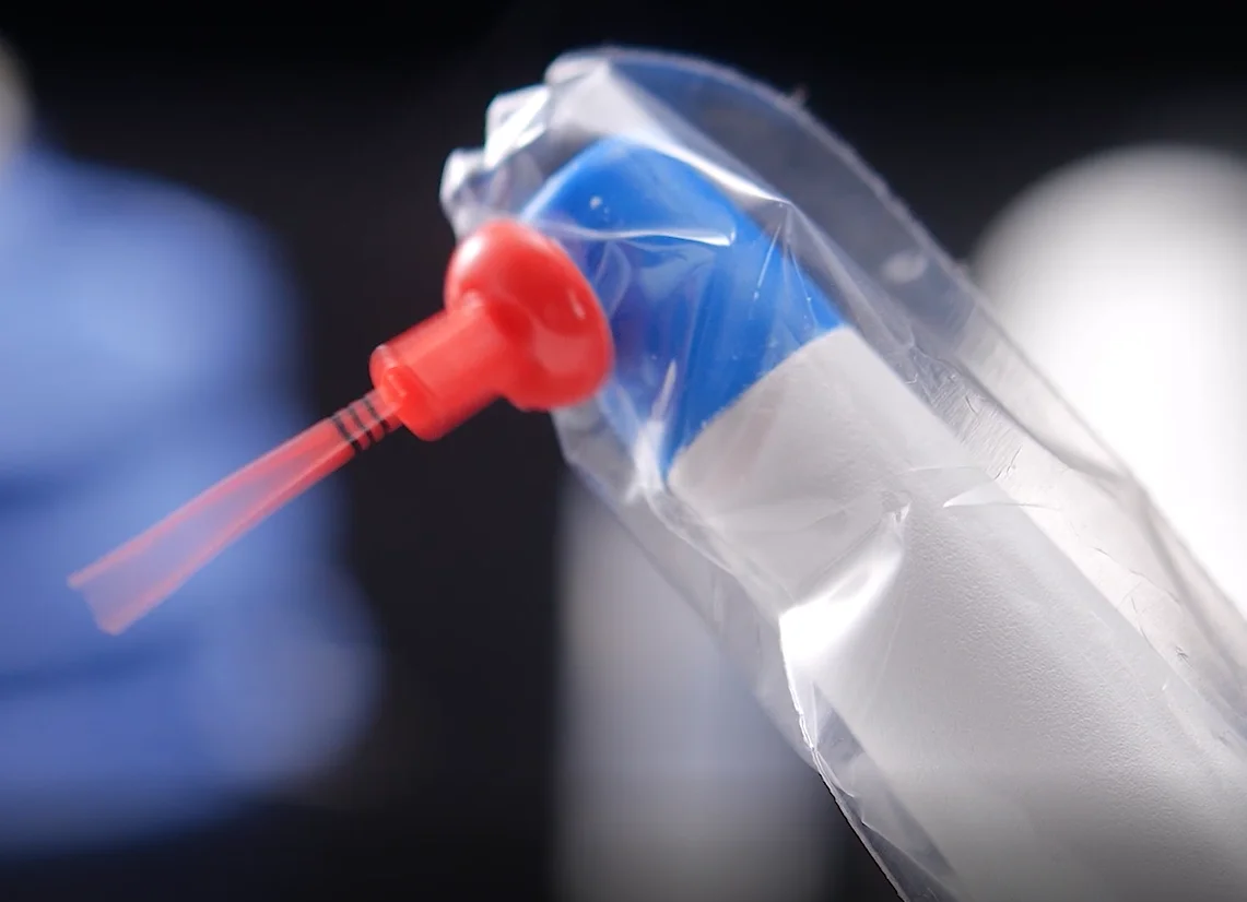 5) Connect the needle tip to the hand device with the barrier sleeve. The activator should snap on firmly, promoting a secure connection with the hand device.