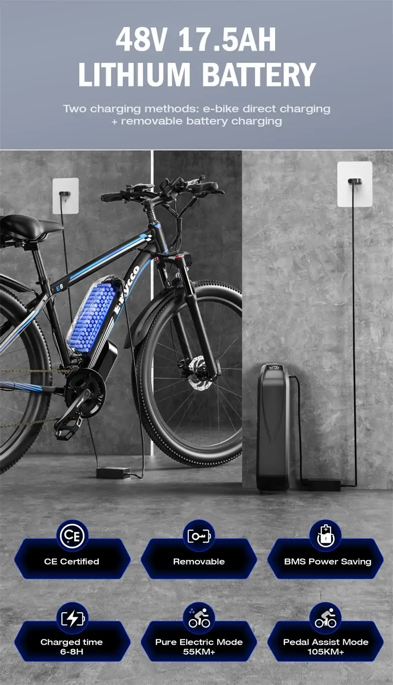 Electric Bike E·Bycco E8 750W 48V 17.5AH Lithium Battery Electric Bicycle LCD IP65 21-speed 29 inches Electric Mountain Bike