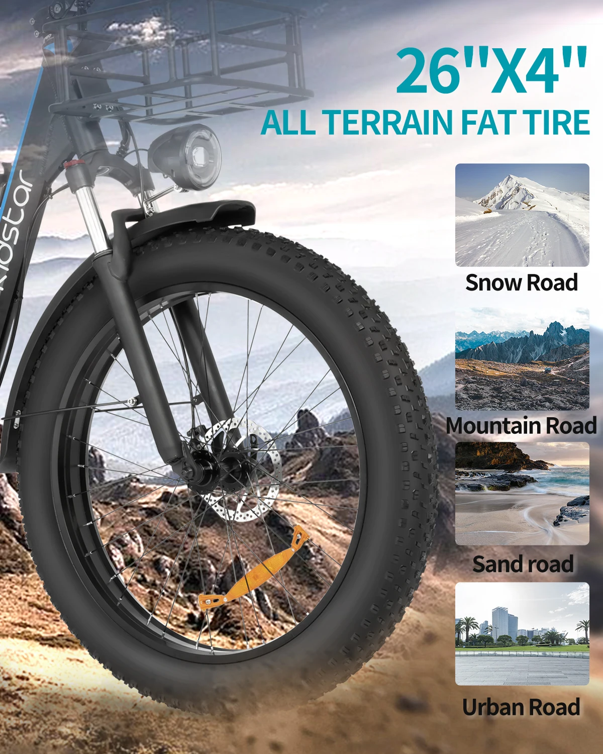 The Ridstar MN-26 ebike comes with additional pre-assembled features. The bottle mounts, front basket, and rear rack have already been installed, allowing you to easily add accessories to your bike. Whatever the situation, the Ridstar MN-26 ebike is your ultimate choice.