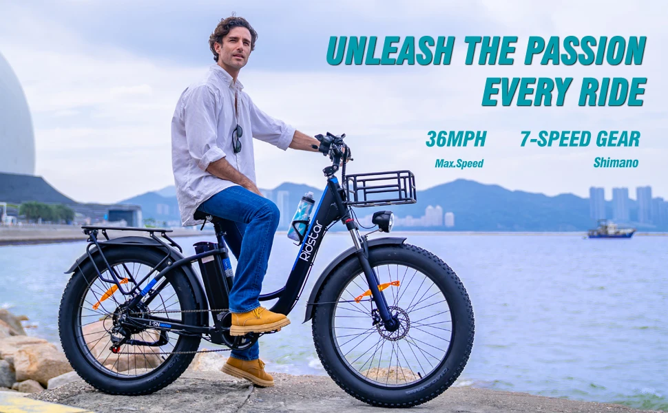 The Ridstar MN-26 features a robust carbon steel frame with adjustable seat and handlebars, a step-through frame, large capacity basket, rear rack, and bottle mounts. This bike is perfect for your daily activities, whether it’s commuting, mountain biking, or leisurely rides