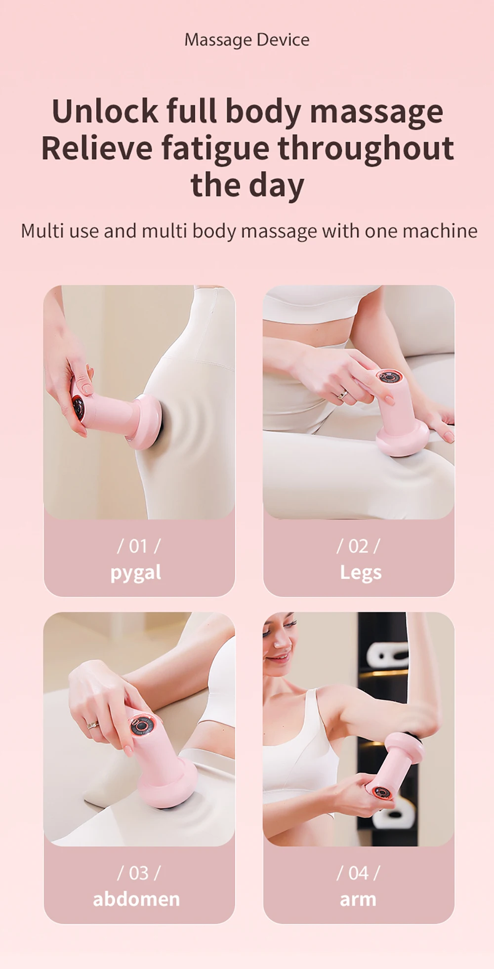 Multifunctional Massager: This body massager is a fat massager and body shaper. It can also be used as a lymphatic drainage machine. Use powerful vibration massage techniques. Suitable for different body parts such as waist, abdomen, thighs, buttocks, abdomen, neck, back and different body tissues such as lymph, fat, muscle, fat, skin. Easy to Use: This body contouring machine comes with 5 massage heads, which can be replaced for more massage and body shaping experiences to meet the needs of different body parts with different strengths. It is both a deep tissue massager and this fat pusher can also be used as a lymphatic massager. The strength can be easily adjusted by simply turning the infinitely variable switch. Each session lasts 8-15 minutes and you can enjoy the spa experience in comfort at home. Easy to Carry: The wireless stylish body massager massages the whole body with a Type-C charging port and a very comfortable, ergonomically designed handle to massage a larger back area. At 0.7 pounds, you can carry the body sculpting machine for belly fat in a bag with you, you can lie quietly or sit at home and enjoy a thorough relaxation and massage, but also take it to the office, school, gym to use, and even enjoy a comfortable body sculpting and massage workout while traveling. Who Can Use It: This belly fat and butt massager is suitable for post-natal mothers, obese people, beauty enthusiasts to recover and maintain their body, as well as for people who suffer from discomfort in the back of the neck, waist and other body muscles due to exercise, work or sleep. Suitable for women, men, old and young. The whole family can use it. The handheld wireless vibrator is a one-stop body shaping, massage and muscle relaxation for your family. The Perfect Gift: This powerful body shaping massager is made of high-quality ABS material with a removable and cleanable massage head. This is the perfect gift for moms, dads, wives, husbands, friends and loved ones. We hope this portable wireless electric fat remover massage machine will spread your care, trust and happiness to each other. If for any reason you are not satisfied with our body shaping tools or find that some massage stick accessories are missing, please contact us and we will give you a full refund.