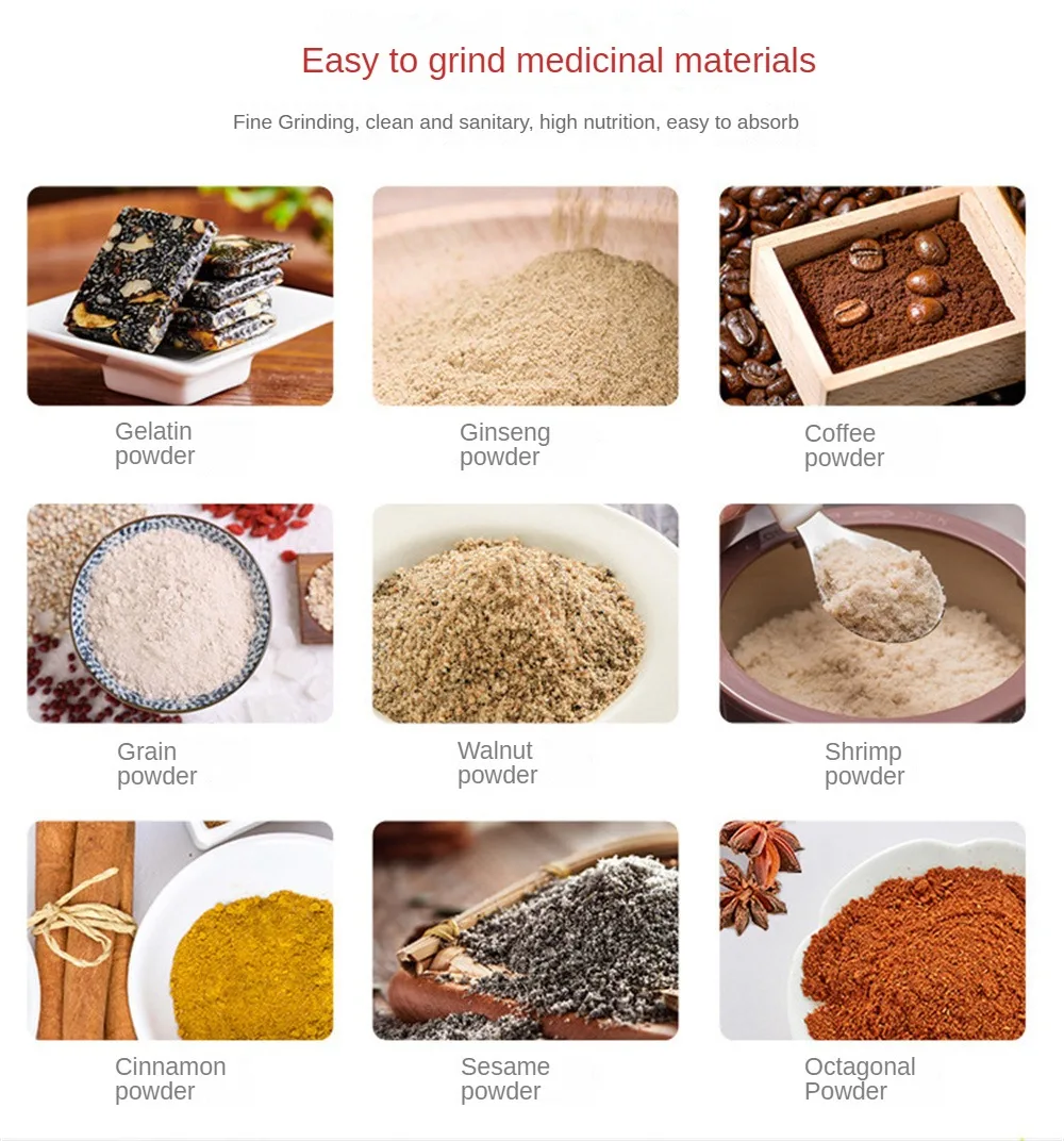 2. Medicinal materials grinding convenient, fine grinding, clean health, high nutrition, easy to absorb