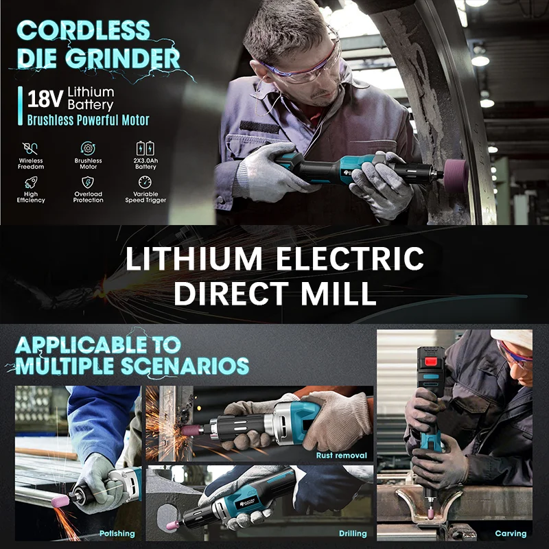 Electric Goddess Brushless Cordless Portable Handheld Grinder 6mm Electric Engraving 4Gears Adjustment For 18V Makita Battery