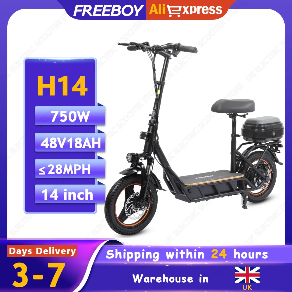Electric Scooter 750W Motor 48V18AH Battery 14 Inch Tire E-Scooters With Savings Shopping Box MAX Speed 28MPH EScooters
