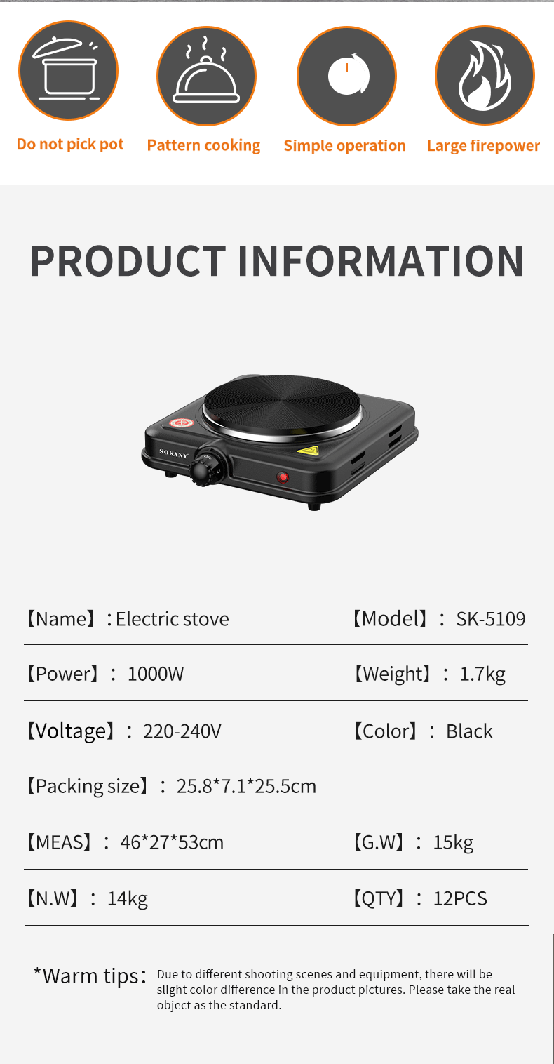 Be the first to review “Electric Stove, Single Burner Cooktop, Compact and Portable, 5 Level Adjustable Temperature Hot Plate, 1200 Watts,Easy to Clean”