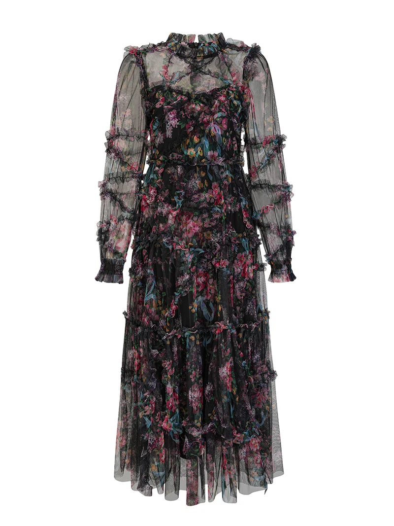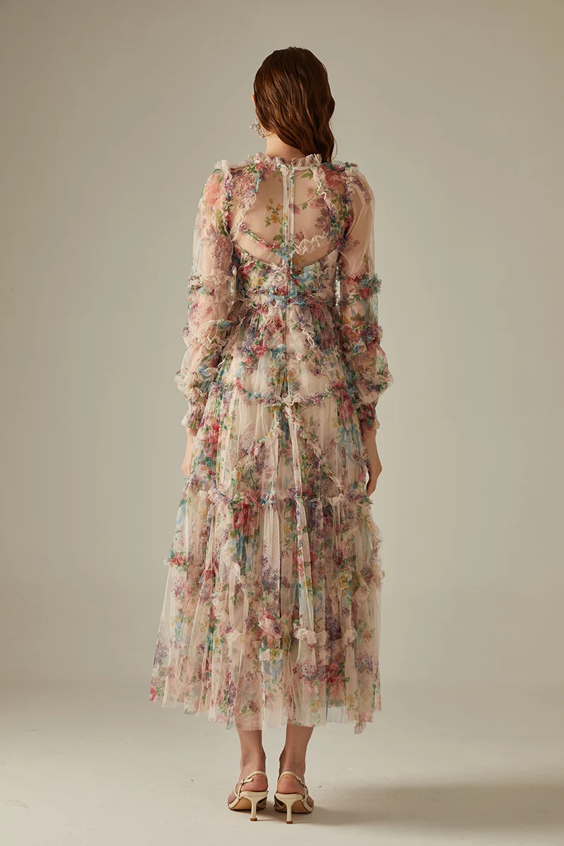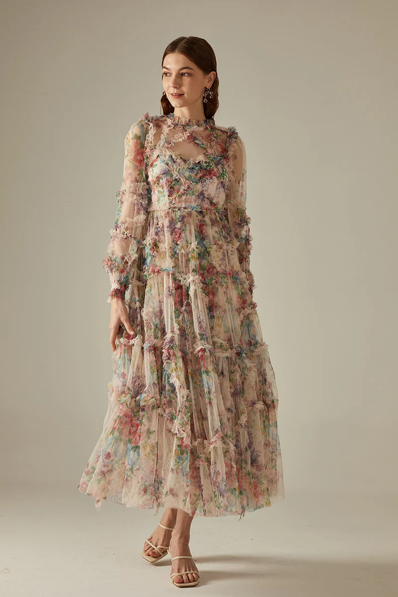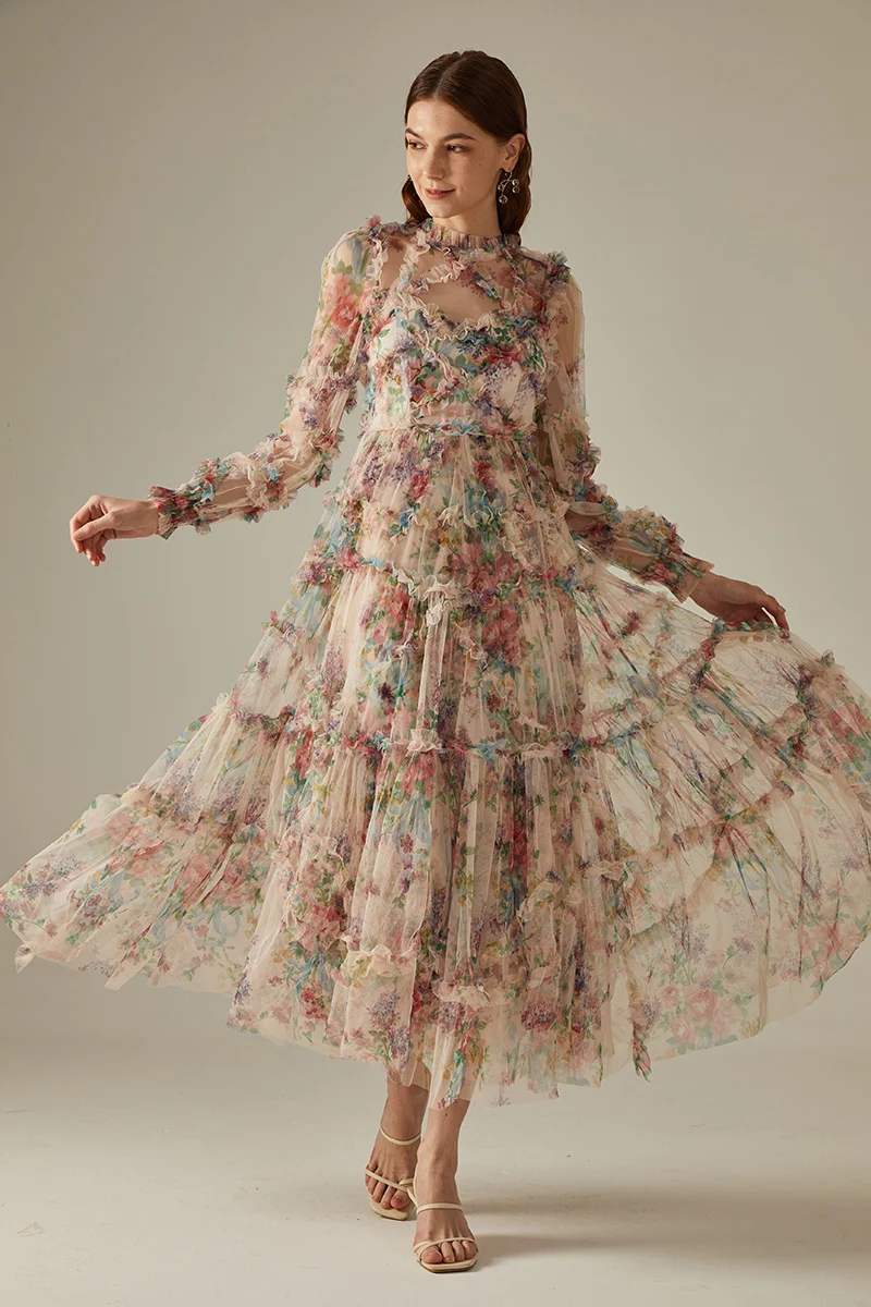 Elegant Sexy Lace Floral Prom Dresses Pleated Long Woman Wedding Party Dress Luxury Long Sleeve Gala Evening Dresses Women 2024