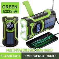 5000mAh Portable Emergency Radio Multi-Powered  Hand Crank Solar Powered AM/FM/NOAA Weather Radio Bluetooth-Compatible5.3 Speaker Phone Charger With LED Reading Lamp Flashlight SOS Alarm for Outdoor Camping Hiking Survival