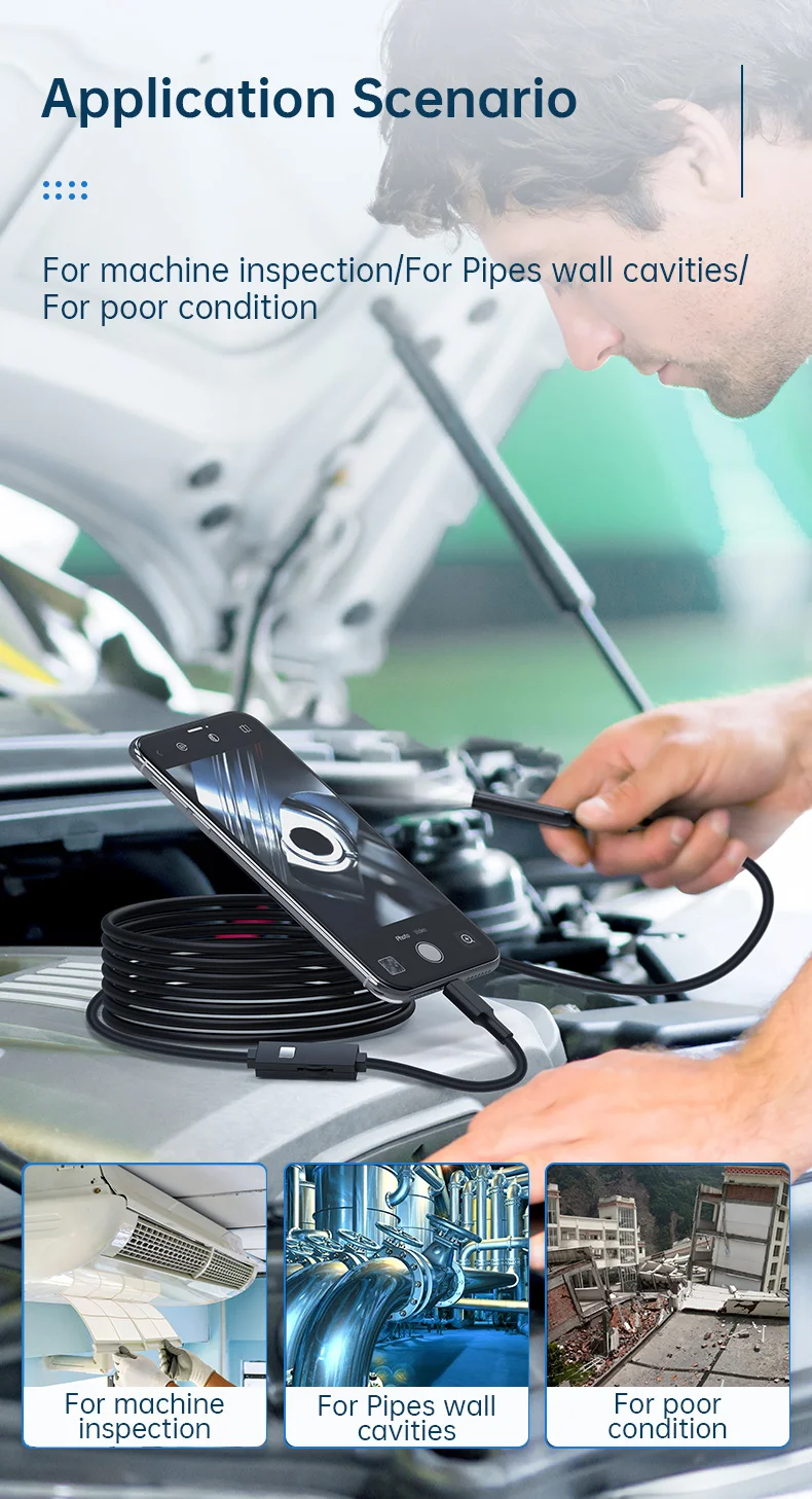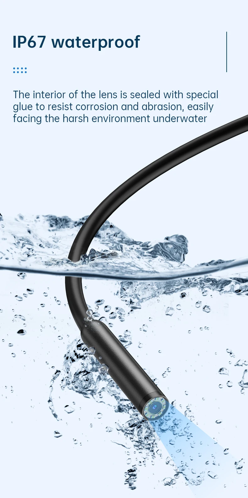 • IP67 Waterproof Rating:With an IP67 waterproof rating, this endoscope camera can be used in wet environments without any worries, making it ideal for pipeline inspection.