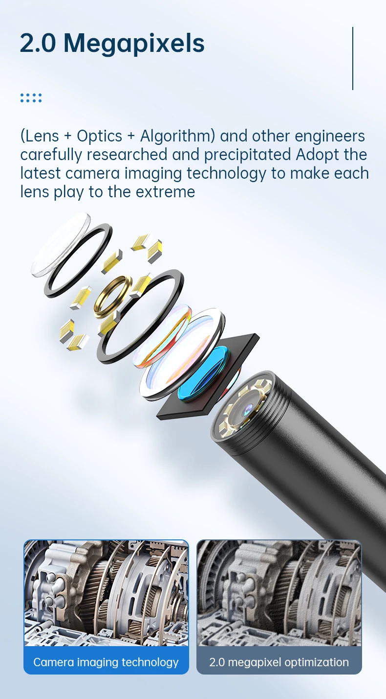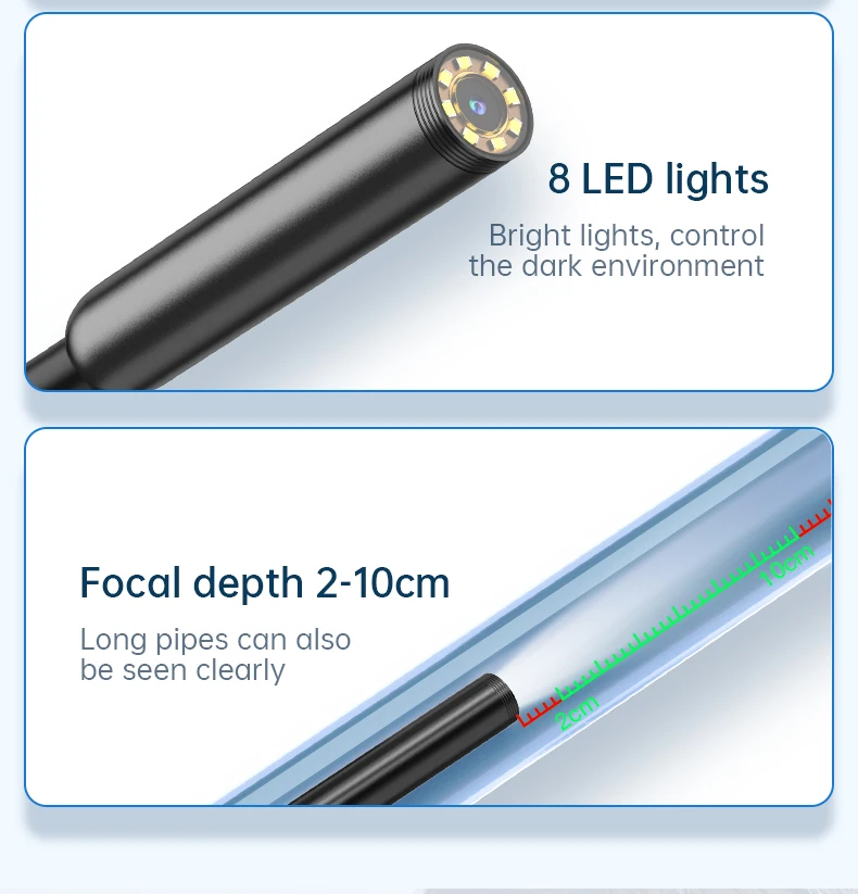 • 8 Adjustable LED Lights:The endoscope camera comes with 8 adjustable LED lights that provide bright and clear illumination, making it easy to inspect hard-to-see areas.