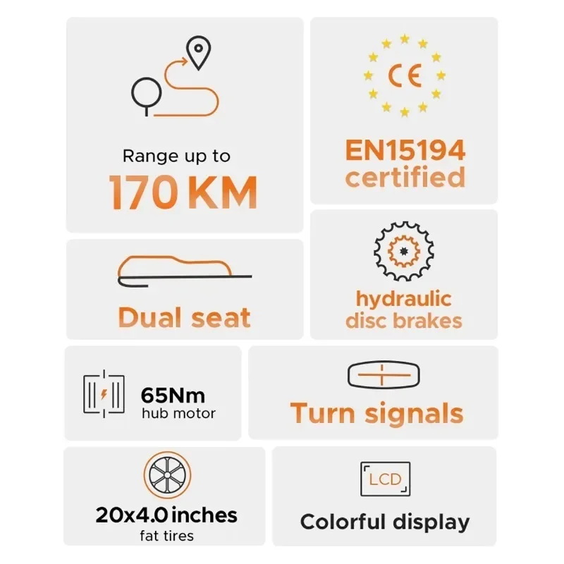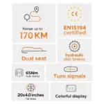 The spacious dual seat is designed to comfortably accommodate two riders, making it perfect for shared journeys. Its ergonomic design ensures a comfortable ride for both the driver and passenger, while the sturdy construction provides support and stability.