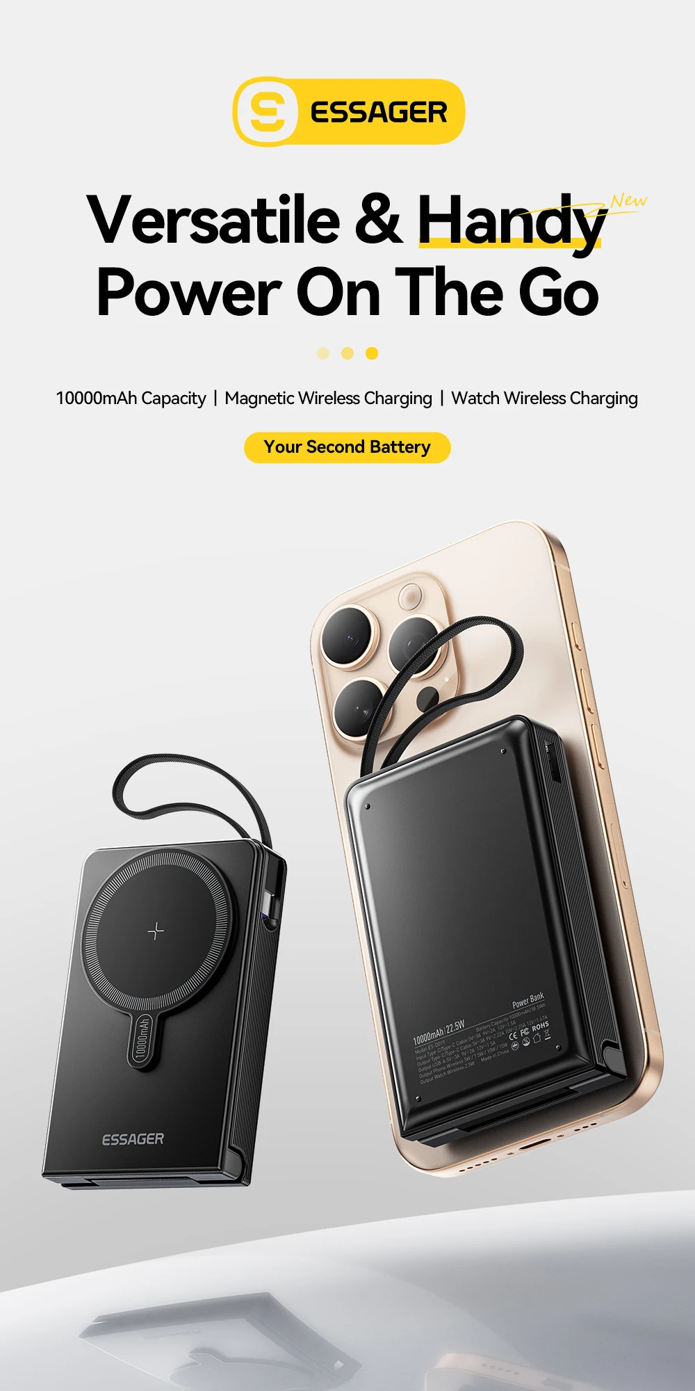 Essager 10000mAh Power Bank Magnetic Portable PD 20W Wireless Fast Charging PowerBanks Auxiliary Battery for iPhone for MagSafe