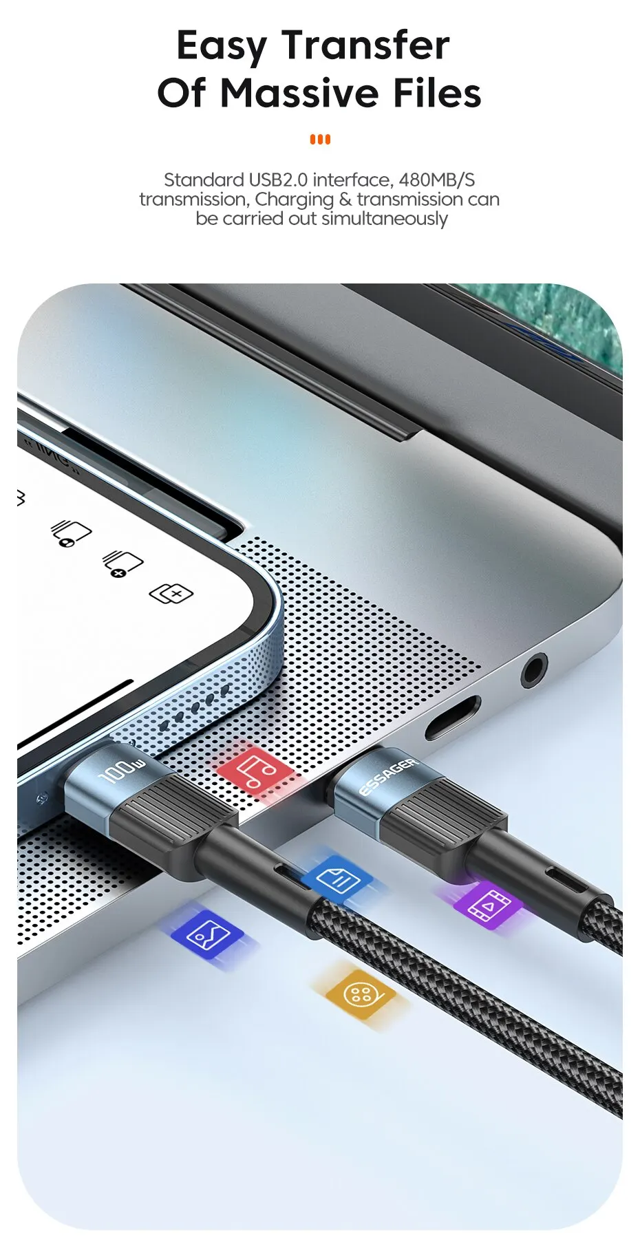 • Fast Charging :Charge your devices quickly with the 100W power delivery technology.