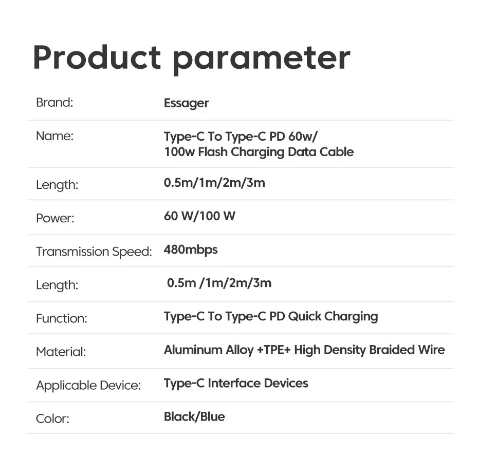 • Type-C Connector :Connect your devices seamlessly with the Type-C connector on both ends.