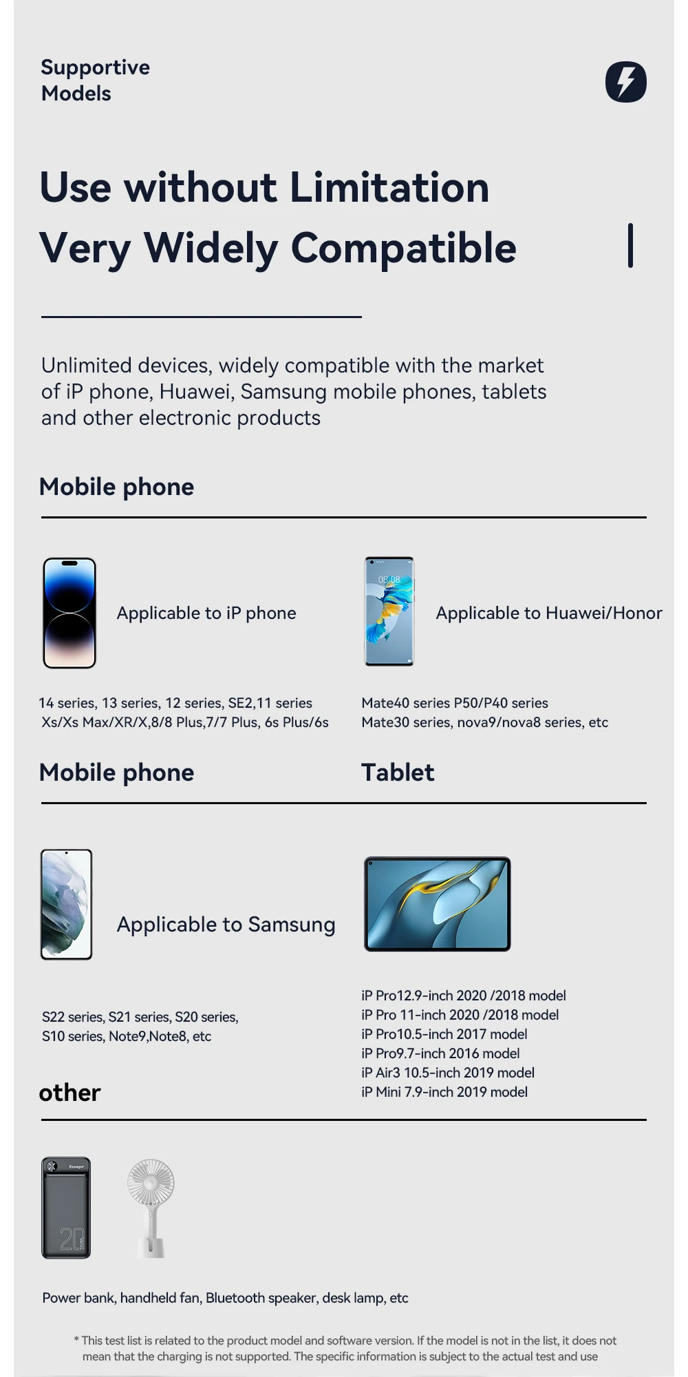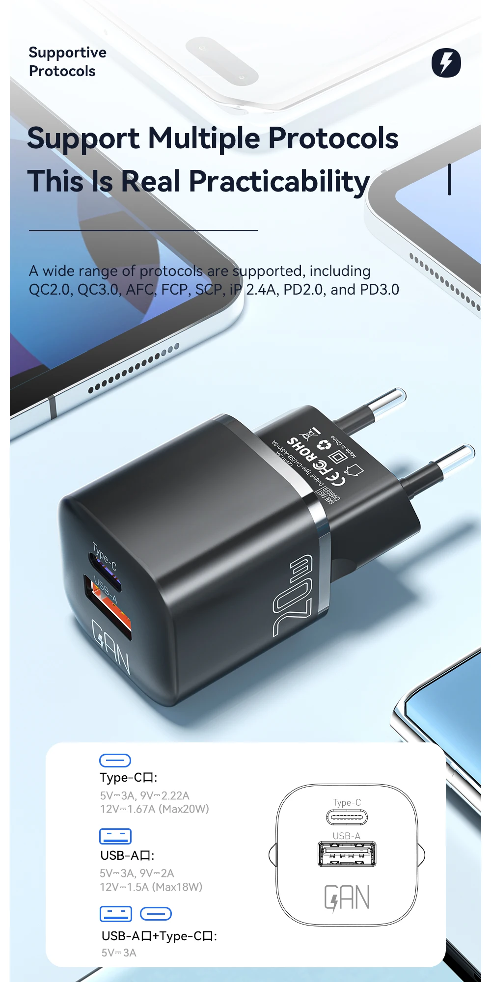 - Applied Fast Charge Protocols: USB PD,Qualcomm Quick Charge,Samsung Adaptive Fast Charge,Huawei FCP
