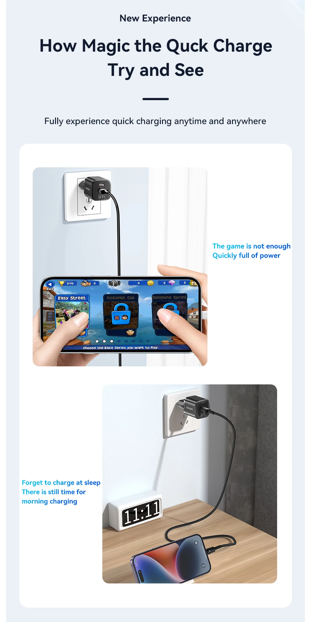 - Feature 3: USB charger/Travel charger/Wall charger