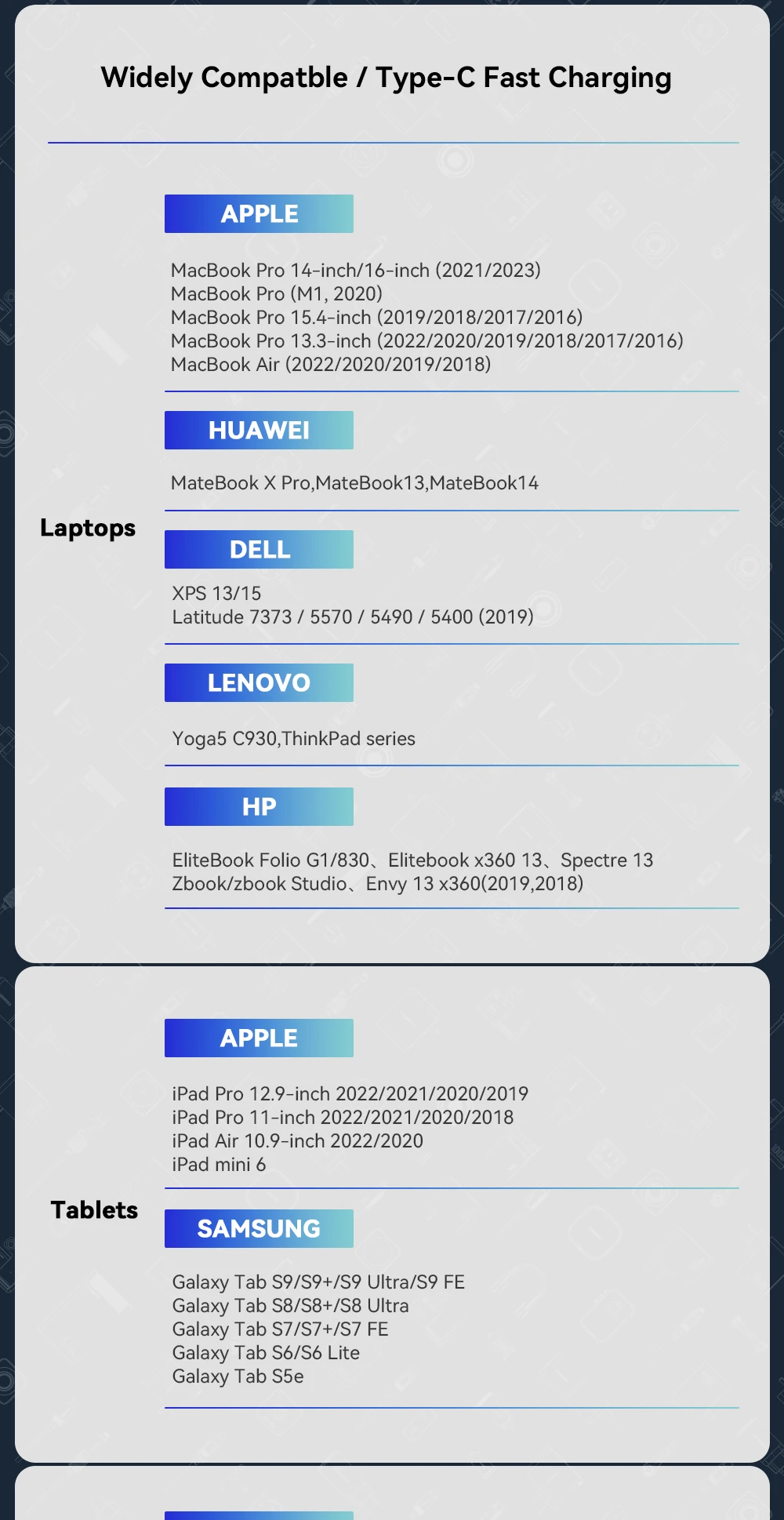 Power: Support 240W PD3.1, backward compatible with PD140W, 100W, 65W, 45W, 30W, etc.