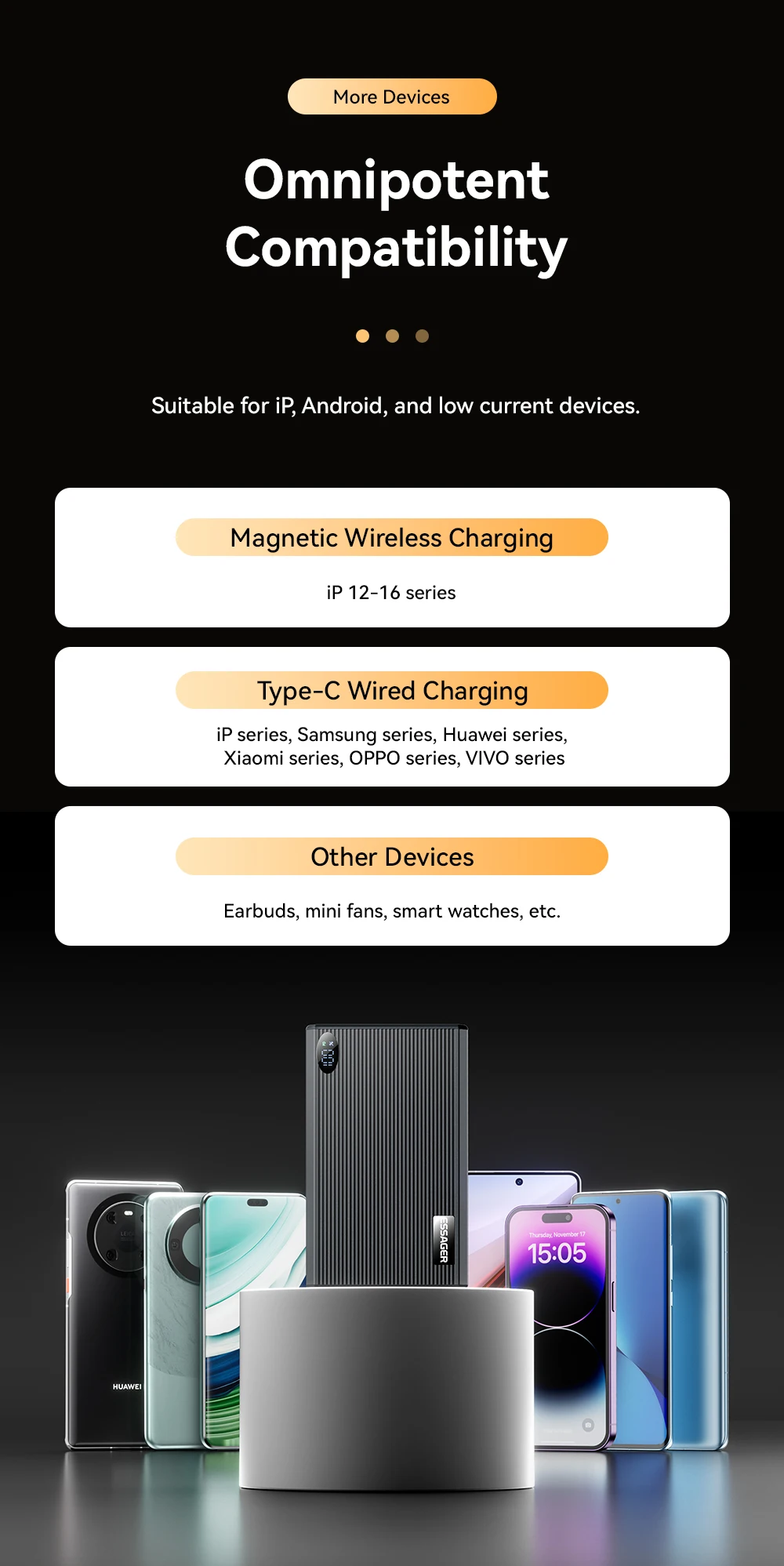 • Type-c Output/Input: 5V/3A; 9V/2.22A;12V/1.67A