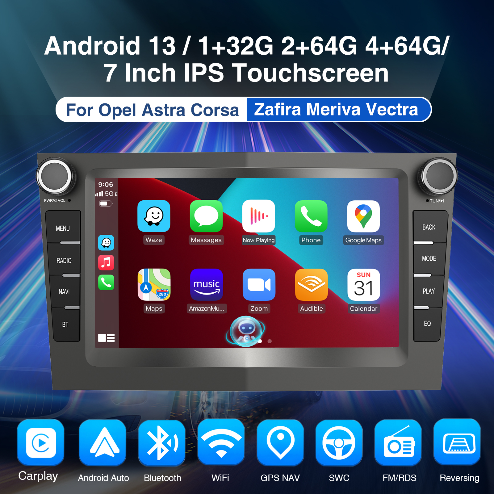 7 Inch Android 13 Car Radio For Vauxhall/Opel Astra Corsa Zafira Meriva Vectra: The Android car radio with 7" 1024*600 HD capacitive touch screen, 32/64GB ROM allows you to download your favorite apps and videos, so that driving will never be boring .No additional frame, no cable change, plug and play.