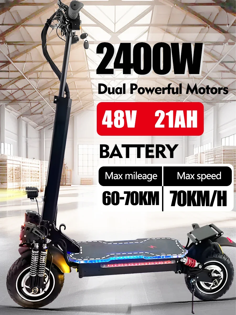 EU 2025 Electric Scooter 2400W Dual Motor 48V 21AH Max Speed 70km/h Max Range 65-75km/h 10 Inch Off-road Tyres Foldable Escooter