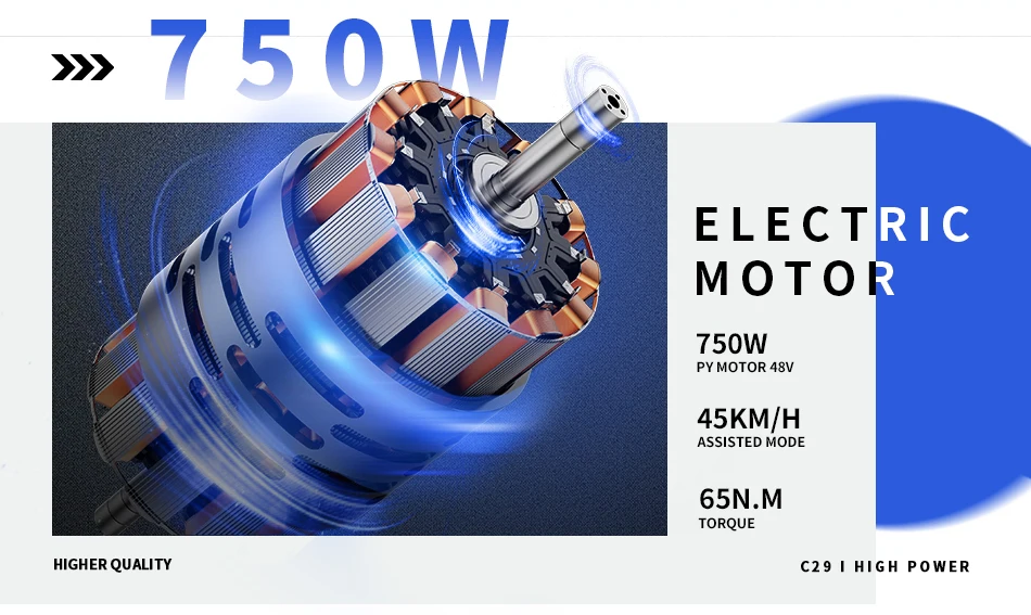 Featuring a 750W brushless motor, this cutting-edge engine not only delivers immense power but also boasts peak efficiency,seamlessly blending speed with silent operation. Conquer uphill climbs, heavy loads, or the need for higher speeds with ease.Whether tackling urban commuting or rugged mountain trails, enjoy smoother, more effortless rides.