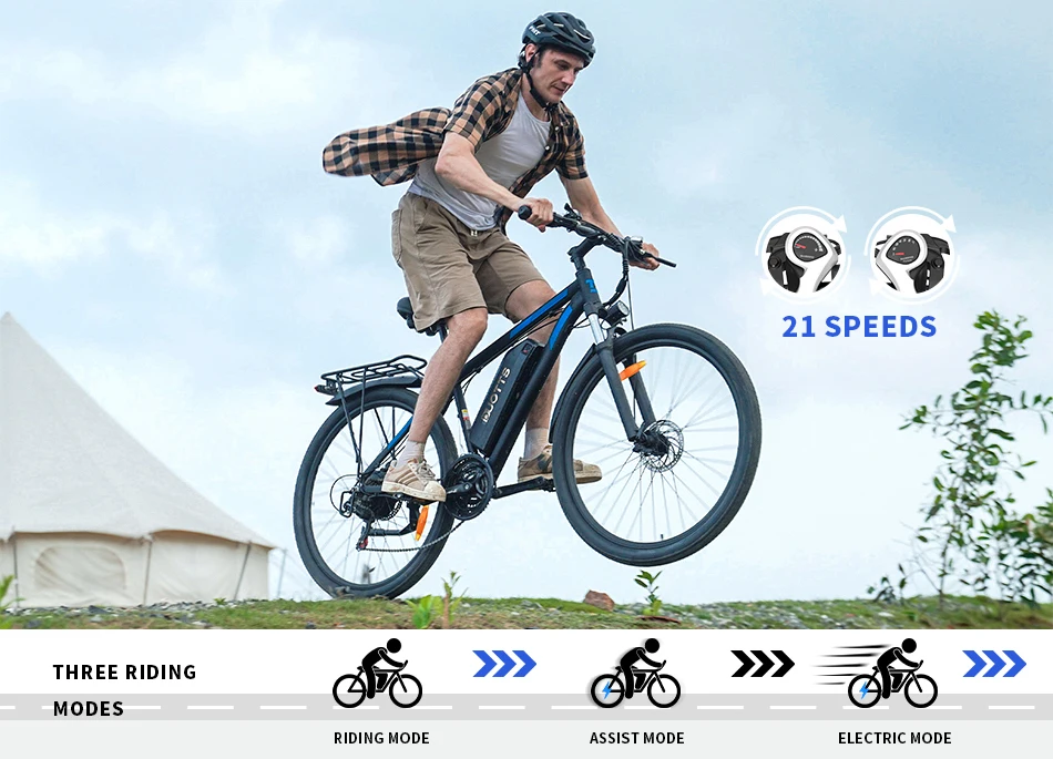 The C29 offers three riding modes: regular cycling, pedal-assist, and pure electric. With a 15AH battery, it supports pedal-assist mode for 80-100 km and pure electric mode for 50-60 km. Its headlights illuminate the way forward, while its lightweight all-aluminum shock-absorbing front fork ensures a safer and more comfortable ride.