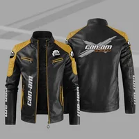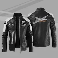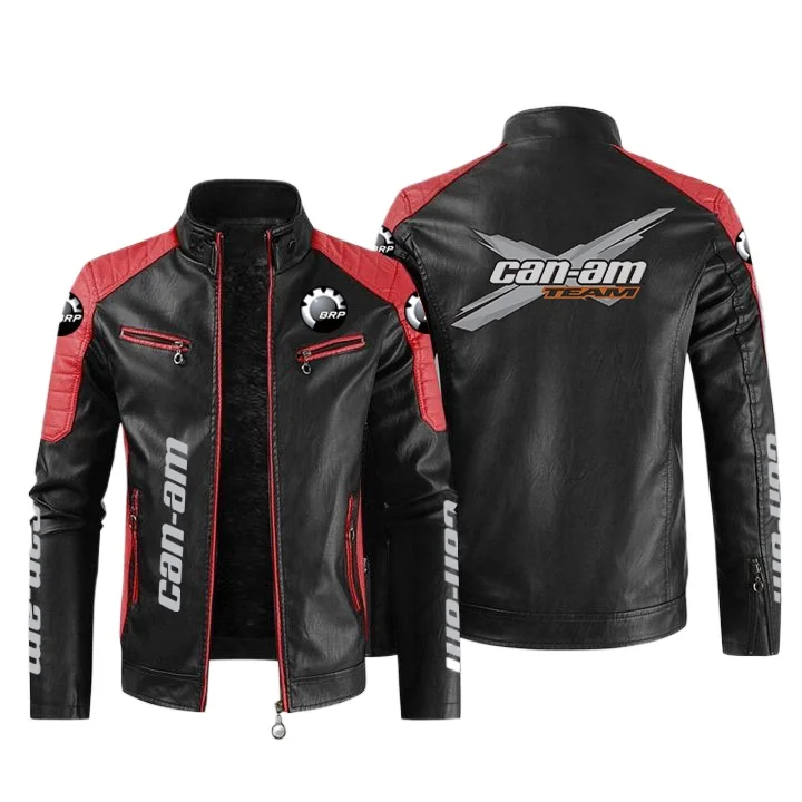 European size thin style can-am motorcycle motorcycle leather jacket contrasting color fashion men’s PU windproof leather jacket