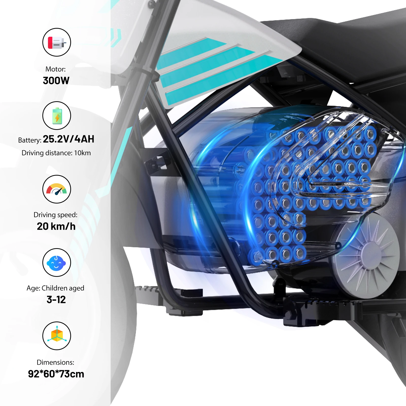EVERCROSS PLUS EV07M Electric Dirt Bike for Kids, Speed Up to 20 km/h, 10 km Range, 11″ Wheels, Suitable for Children 3-12 Years