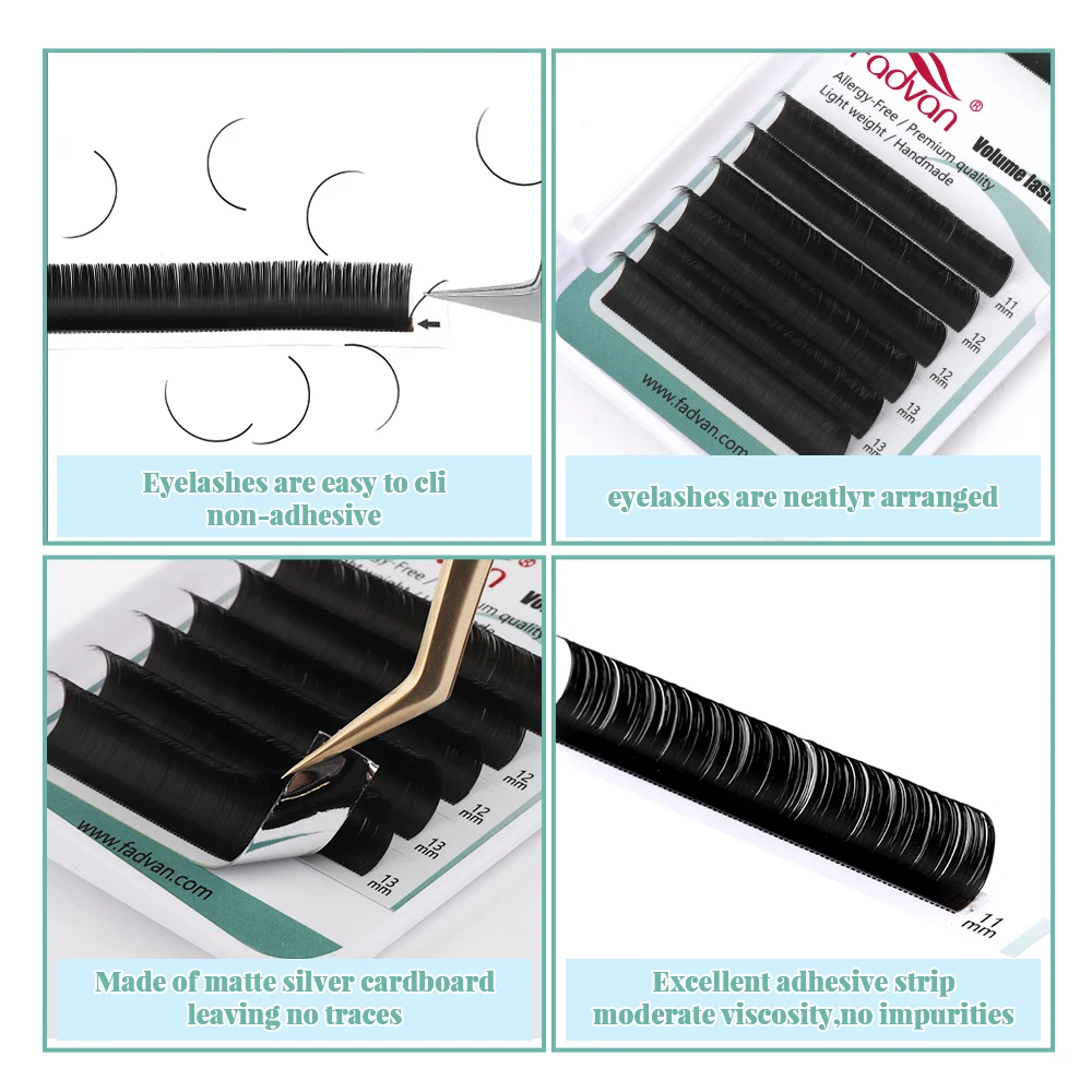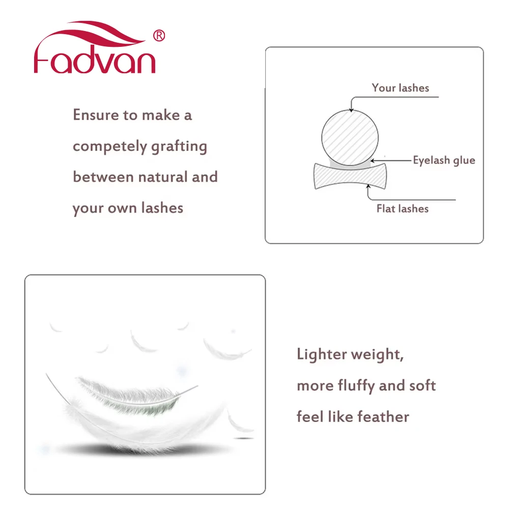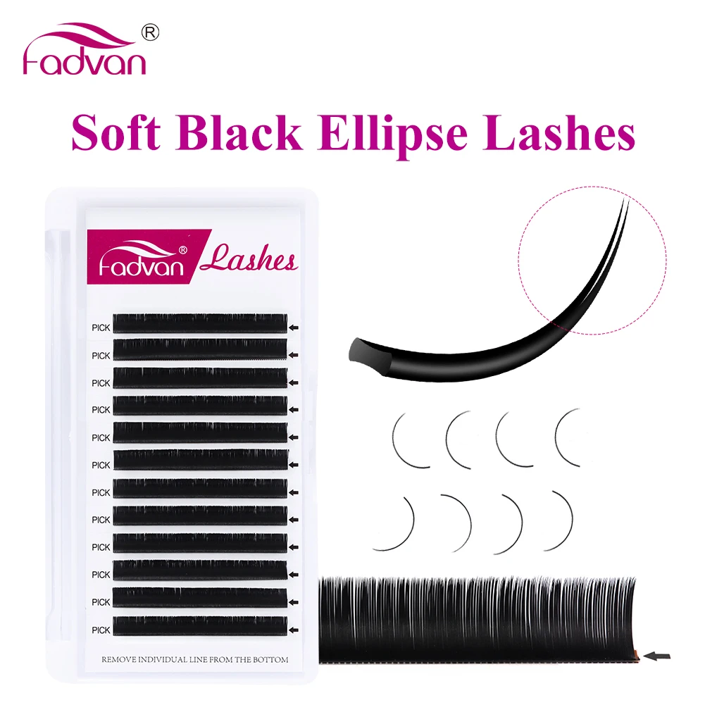 Fadvan Ellipse Flat Eyelash 0.15/0.20 Silk Classic Individual Lashes Extension Natural Faux Mink Eyelashes Wire Matte Black