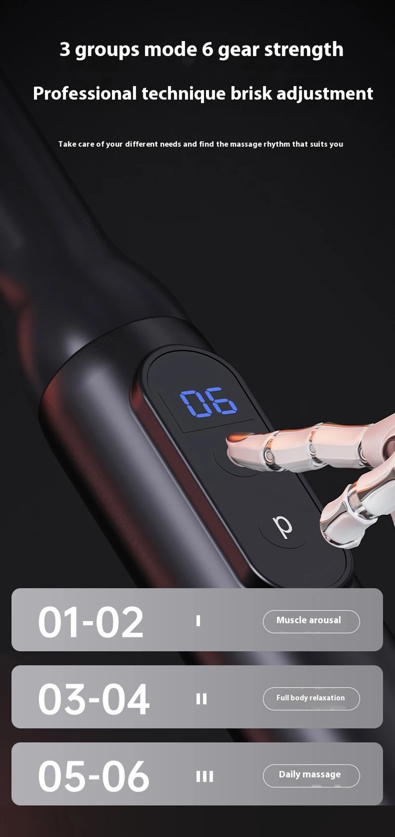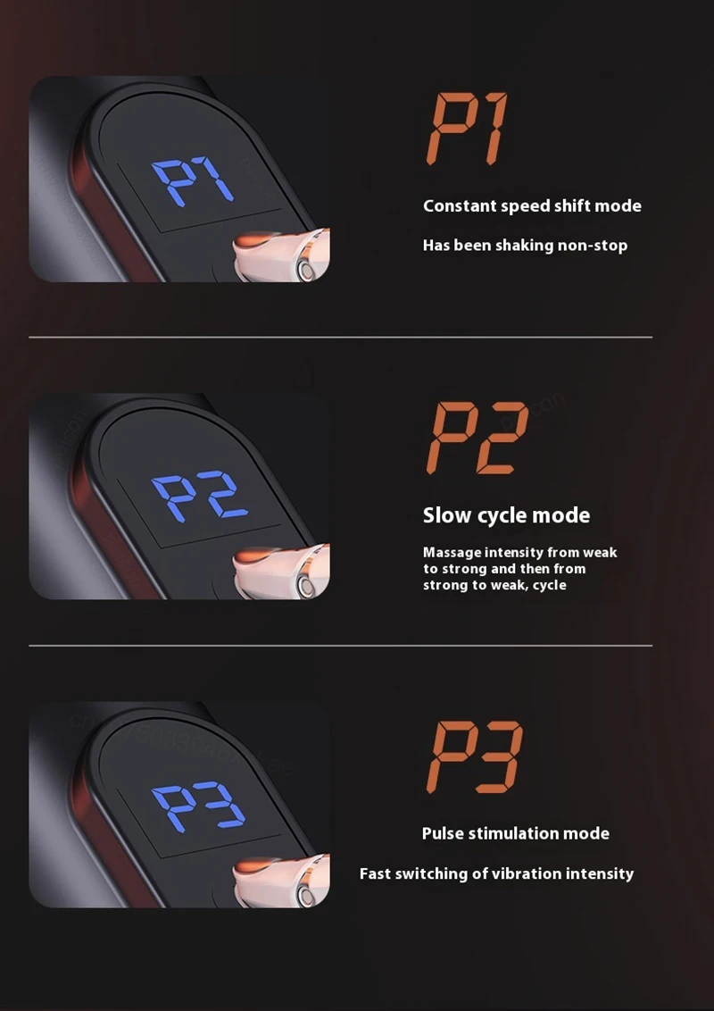【Personalized Muscle Care】Experience personalized muscle care with 3 modes and 6 adjustable speeds. P1 Mode offers 6 speed levels (1700-3200 RPM). P2 Mode (Automatic transmission, high speed strong) and P3 Mode (Intermittent high-speed massage) cater to different needs. In P1 Mode, adjust speeds by pressing the on/off switch. Switch modes by pressing the "P" key
