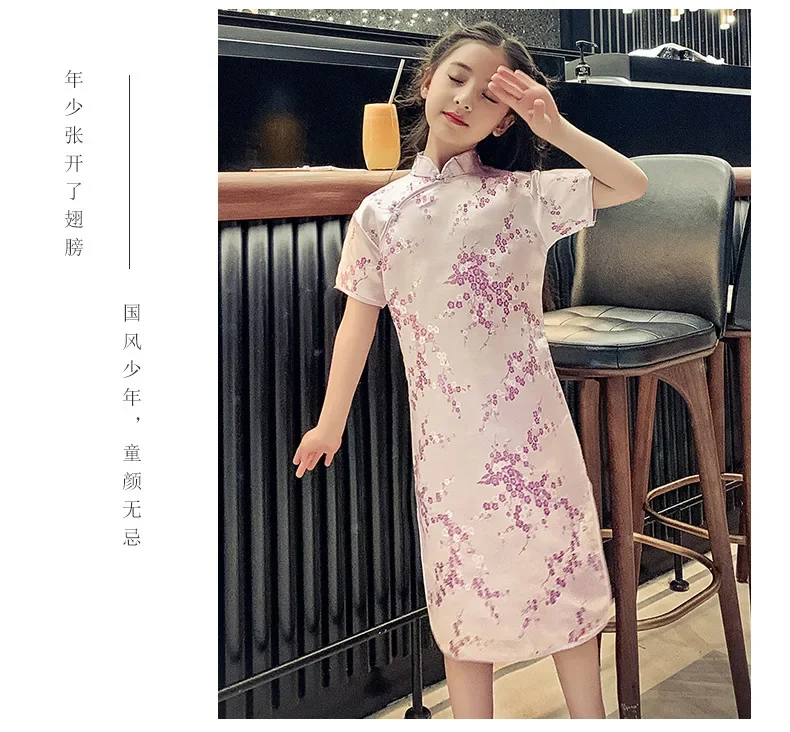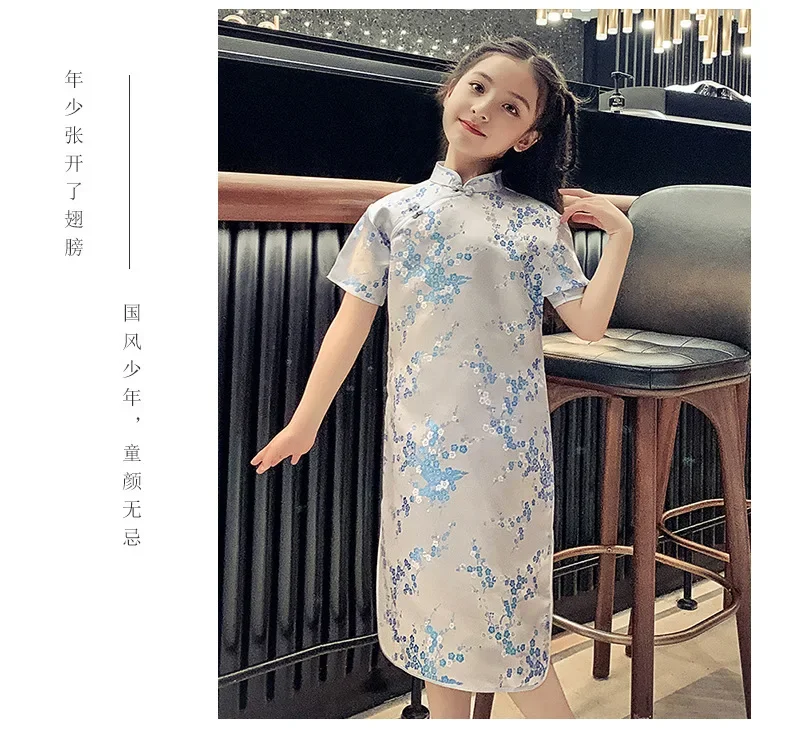 Fashion Modern Cheongsam Children Girls Dresses Summer Baby Casual Qipao Costumes Kids Clothes Chinese Style Girl Dress Vestidos