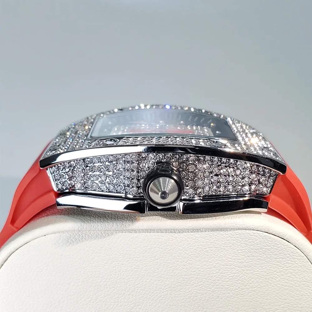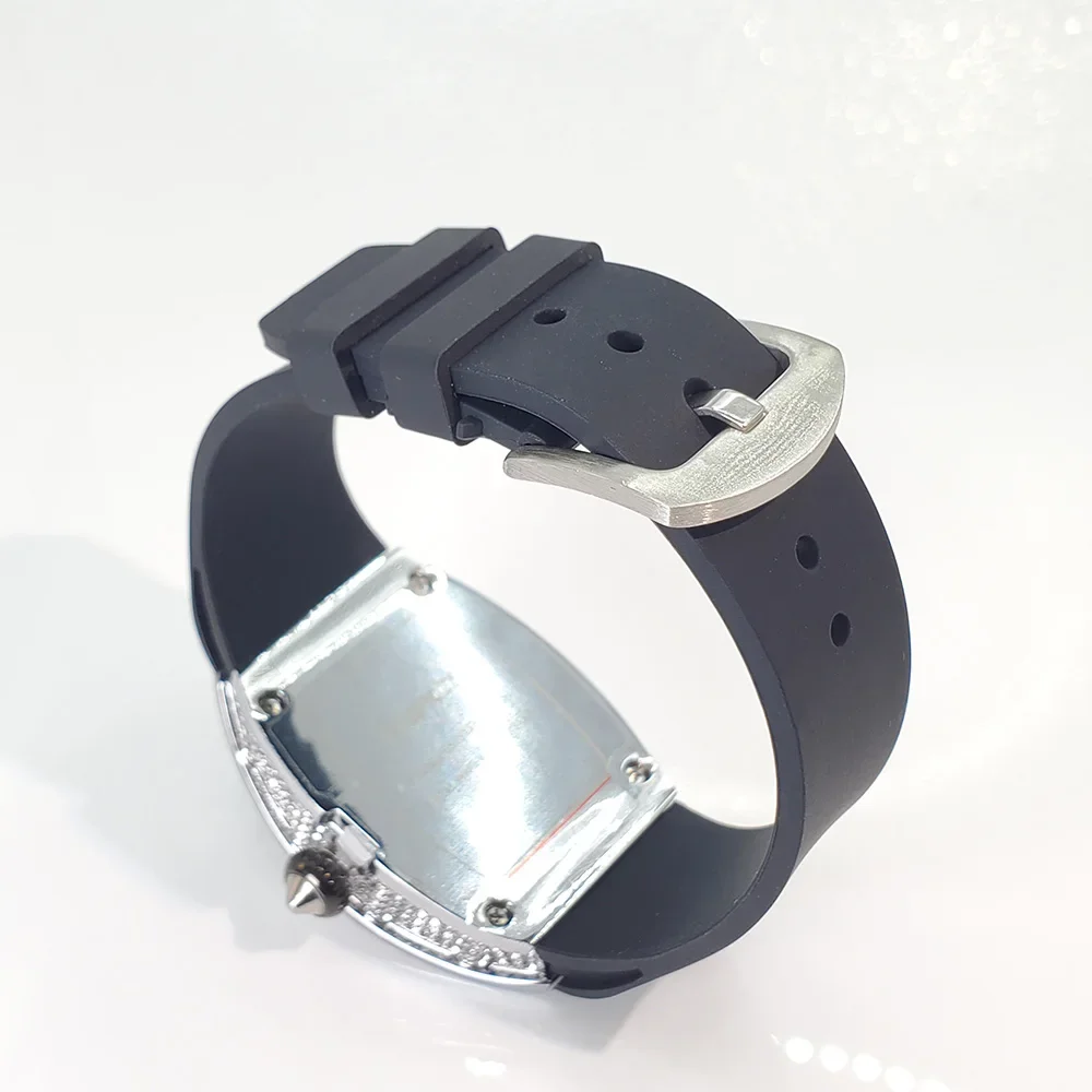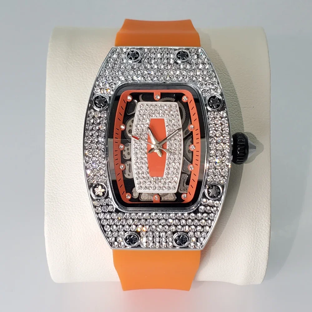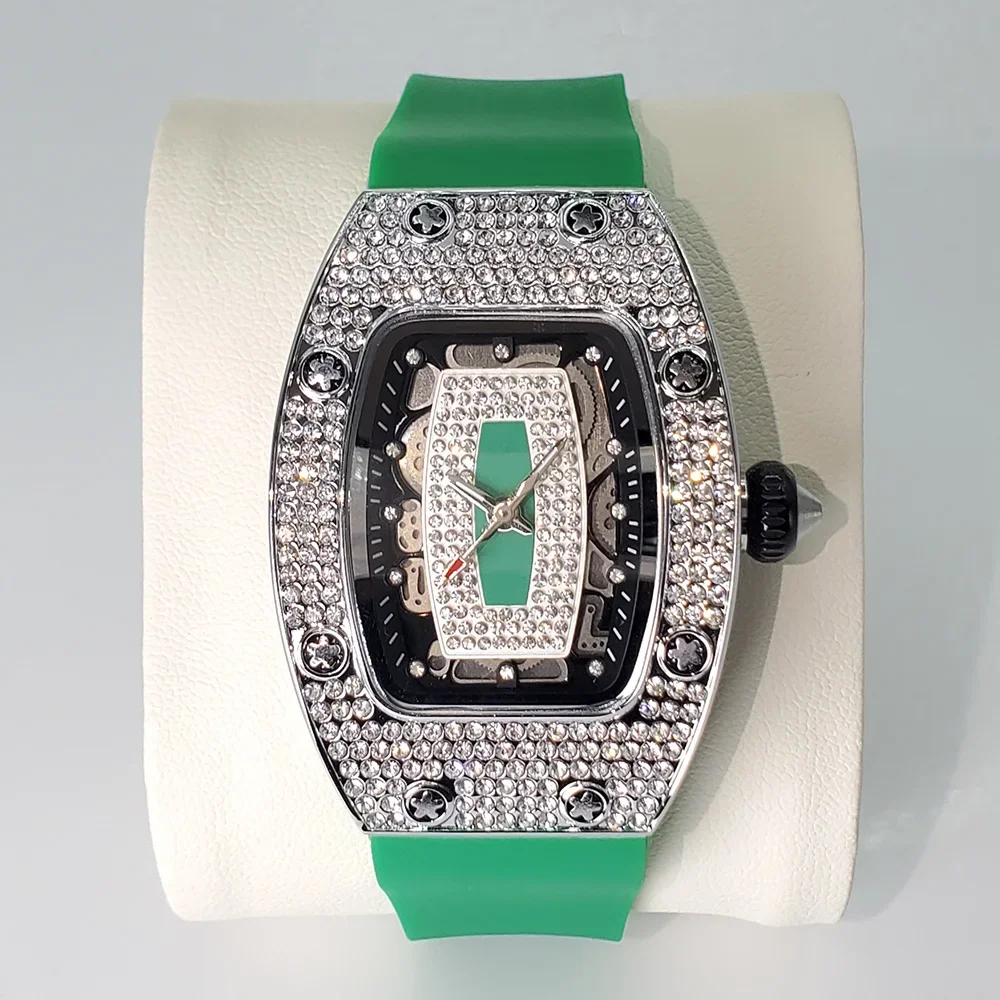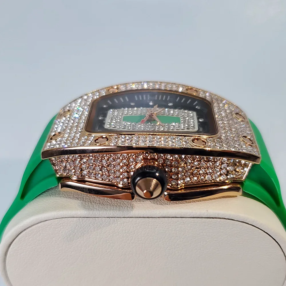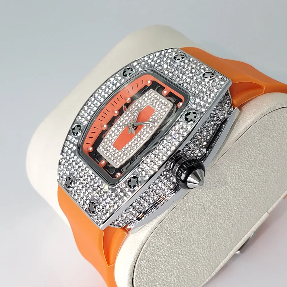 Fashion Rose Iced Watches Women Casual Silicone Strap Quartz Dress Full Diamond AAA Tonnneau Watch For Ladies Dropshipping