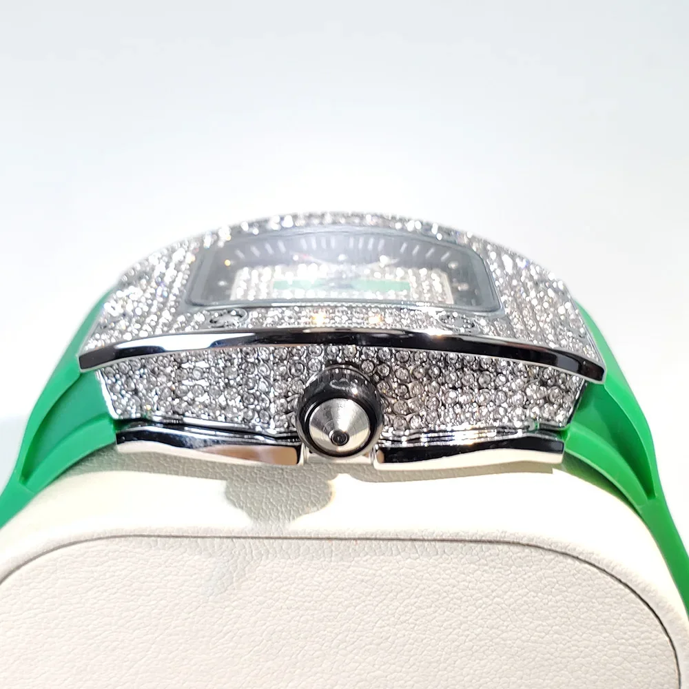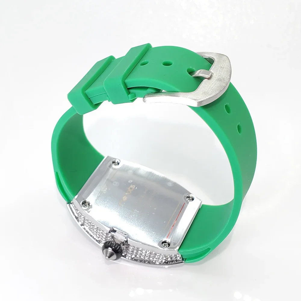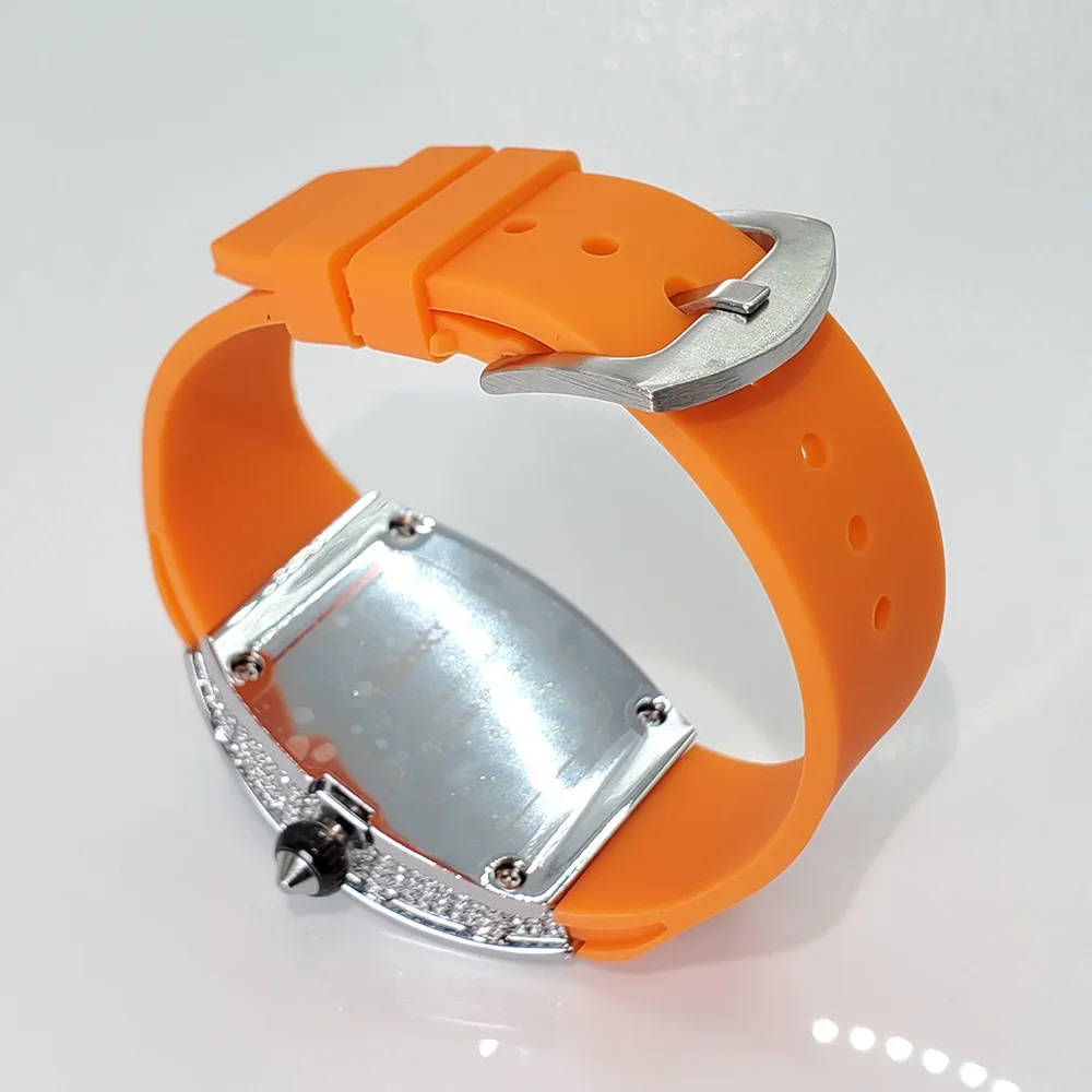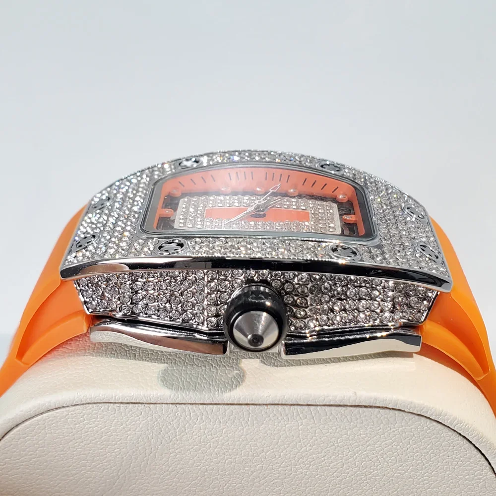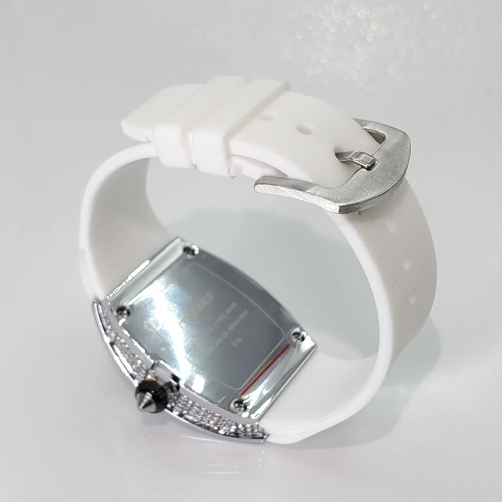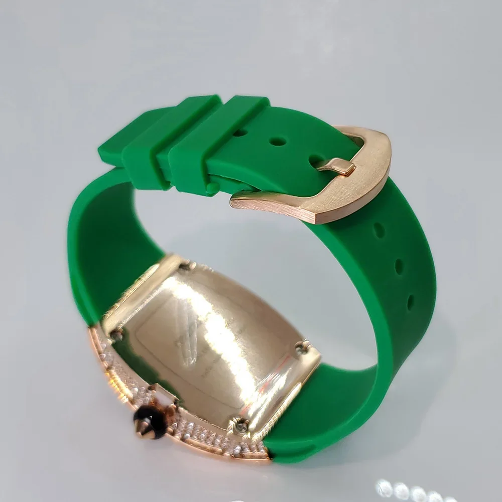 Fashion Rose Iced Watches Women Casual Silicone Strap Quartz Dress Full Diamond AAA Tonnneau Watch For Ladies Dropshipping
