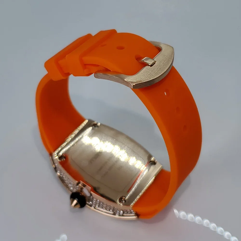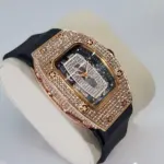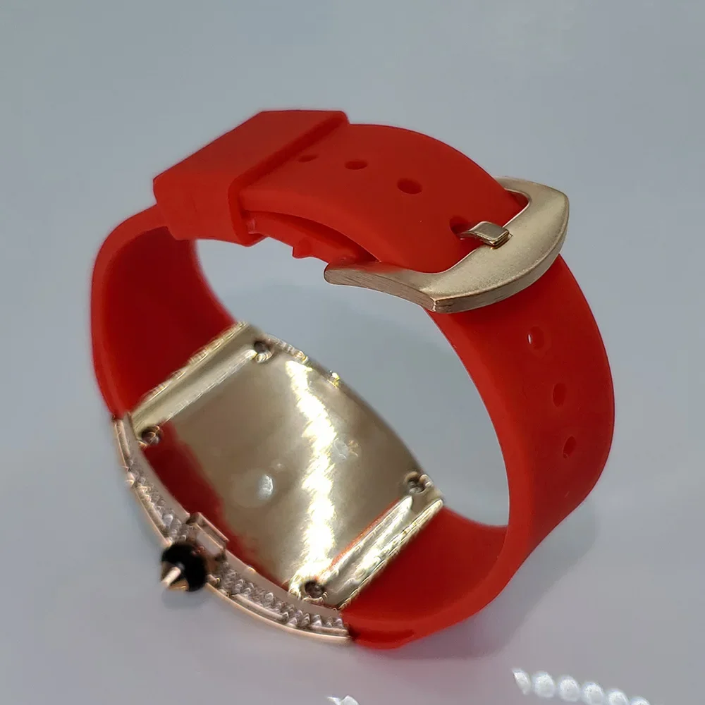 Be the first to review “Fashion Rose Iced Watches Women Casual Silicone Strap Quartz Dress Full Diamond AAA Tonnneau Watch For Ladies Dropshipping”